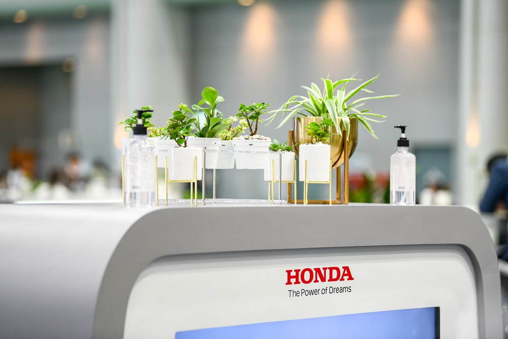 การออกแบบบูทฮอนด้าในปีนี้ มาในแนวคิด ‘Modern Minimal’ ที่ได้ปรับลดโครงสร้างให้น้อยลง เพื่อจัดสรรพื้นที่ให้เปิดกว้างขึ้น โปร่งโล่ง ลดความแออัดด้วยการกำหนดระยะห่างอย่างเหมาะสม พร้อมด้วยมาตรการดูแลสุขอนามัยและความสะอาดที่เข้มข้นตามหลัก Social Distancing เพื่อให้ลูกค้าเยี่ยมชมบูทได้อย่างสะดวกสบายและมั่นใจ