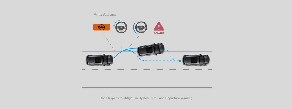 - ระบบเตือนและช่วยควบคุมเมื่อรถออกนอกช่องทางเดินรถ (Road Departure Mitigation System with Lane Departure Warning : RDM with LDW)