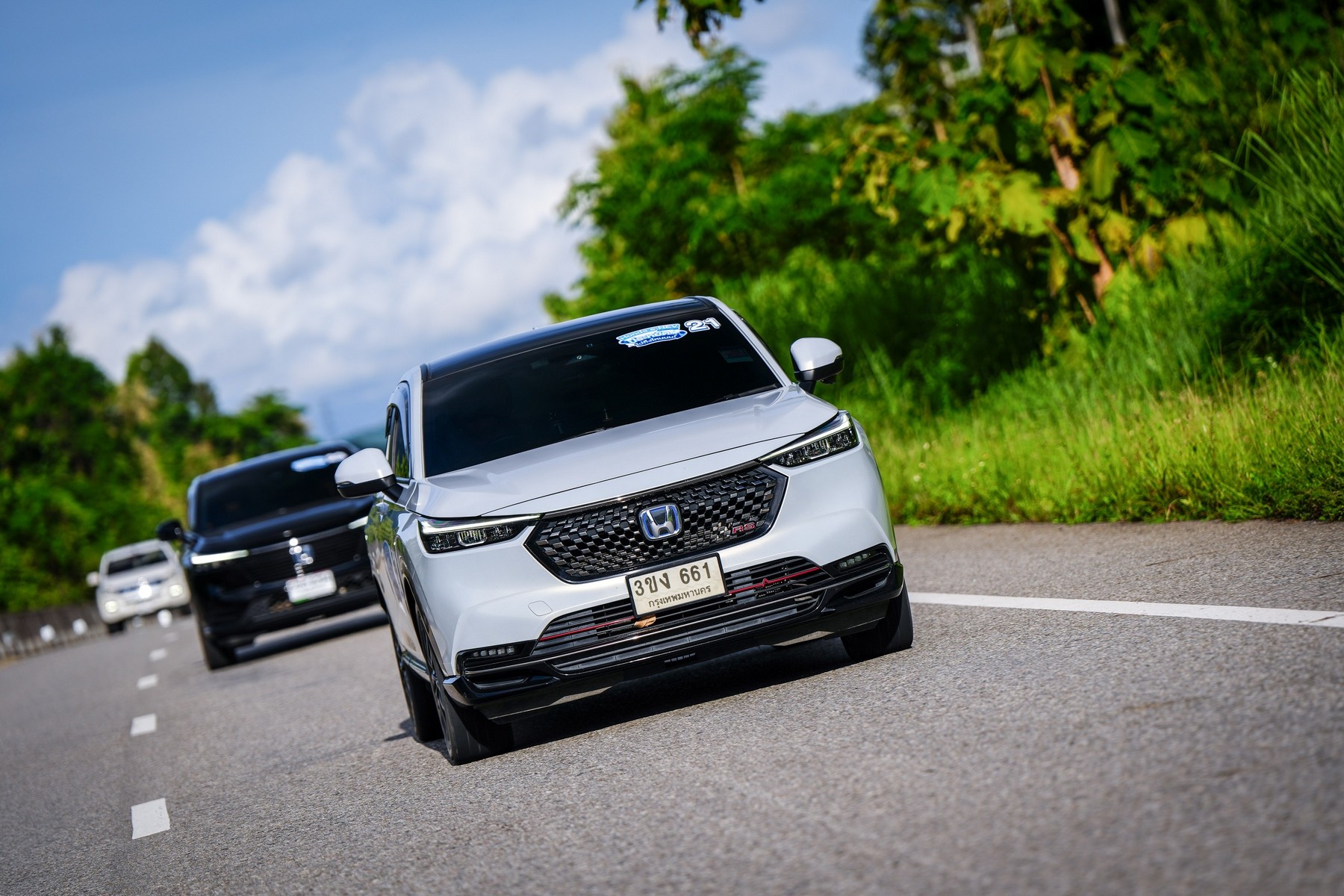 บริษัท ฮอนด้า ออโตโมบิล (ประเทศไทย) จำกัด ตอกย้ำความประหยัดของระบบฟูลไฮบริด e:HEV ผ่านทริปสุดพิเศษ ‘Honda e:HEV Challenge ประหยัด… ไปถึงไหนนน!’ แท็กทีมลูกค้ารถยนต์ Honda e:HEV ทั้ง 6 รุ่น จำนวน 30 คัน รวมผู้ขับขี่พร้อมผู้โดยสารทั้ง 60 คน และคณะสื่อมวลชนสายยานยนต์ ร่วมพิสูจน์ความประหยัดน้ำมัน และสมรรถนะการขับขี่ของระบบขับเคลื่อนฟูลไฮบริด e:HEV กับน้ำมัน 1 ถัง บนเส้นทางการขับขี่จริงจากกรุงเทพฯ – พิษณุโลก – เชียงใหม่ รวมระยะทางกว่า 900 กิโลเมตร โดยผลลัพธ์จากกิจกรรมพบว่ารถยนต์ Honda e:HEV ทุกรุ่น สามารถขับขี่ได้ไกลเกินกว่า 900 กิโลเมตร ด้วยน้ำมันเพียงถังเดียว* โดยไม่มีการแวะเติมน้ำมัน คอนเฟิร์มความประหยัดจากลูกค้าผู้ใช้งานจริง กับสถิติตัวเลขอัตราการประหยัดน้ำมันที่ดีเยี่ยมเกินกว่าป้ายข้อมูลรถยนต์ตามมาตรฐานสากล หรือ ECO Sticker* อีกทั้งลูกค้ายังได้ร่วมแลกเปลี่ยนเคล็ดลับการขับขี่ที่ตอกย้ำความประหยัดอีกขั้น พร้อมเชิญชวนผู้ที่สนใจร่วมสัมผัสและพิสูจน์ความประหยัดของ Honda e:HEV ทุกรุ่นด้วยตัวคุณเอง และให้ทุกท่านสามารถเป็นเจ้าของได้ด้วยข้อเสนอพิเศษ ณ โชว์รูมฮอนด้าทั่วประเทศ