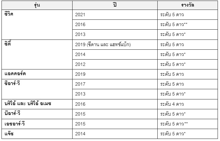 ยนตรกรรมฮอนด้ารุ่นที่ได้รับรางวัลจากASEAN NCAP