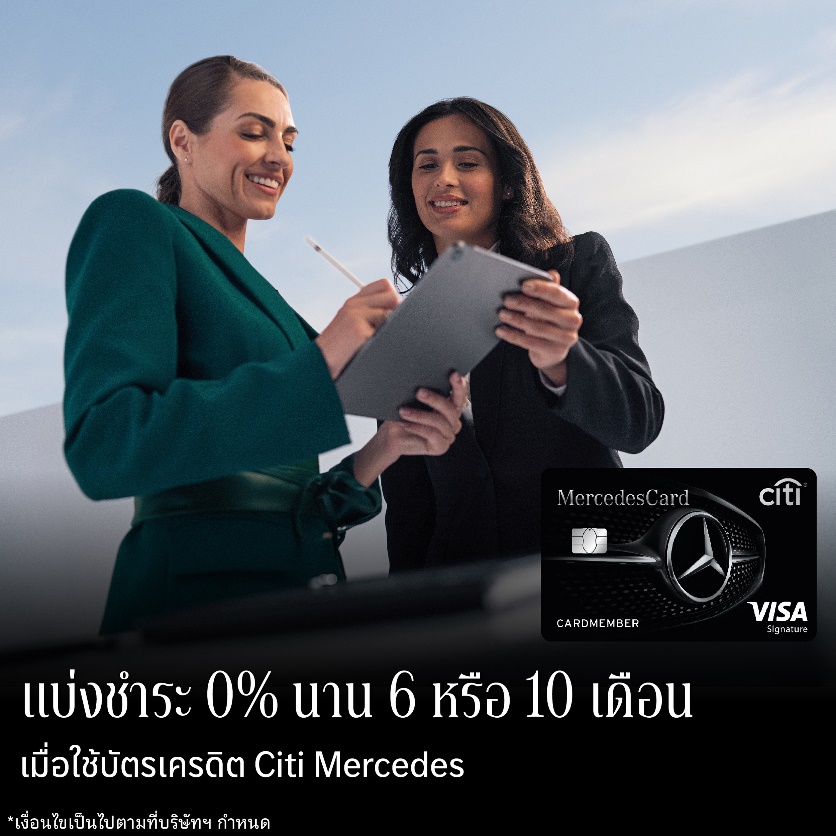 สิทธิพิเศษที่ 3: สำหรับผู้ถือบัตรเครดิต Citi Mercedes เลือกแบ่งชำระนาน 6 หรือ 10 เดือน ด้วยดอกเบี้ย 0 % เมื่อมียอดค่าใช้จ่ายผ่านศูนย์บริการฯ ตั้งแต่ 25,000 บาท ขึ้นไป/เซลล์สลิป (ไม่รวม VAT)