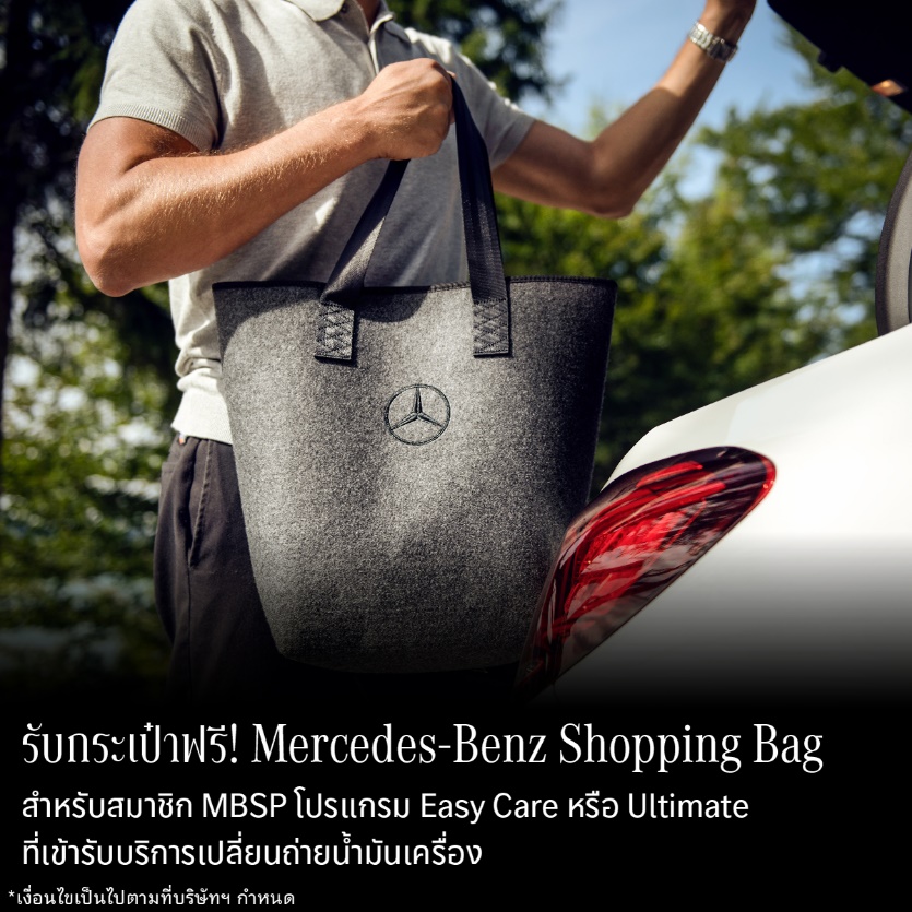 สิทธิพิเศษที่ 4: สมาชิก MBSP ที่มีโปรแกรม Easy Care หรือ Ultimate เมื่อนำรถเข้ารับบริการเปลี่ยนถ่ายน้ำมันเครื่อง รับฟรี กระเป๋า Mercedes-Benz Shopping Bag มูลค่า 1,583 บาท จำนวน 1 ใบ