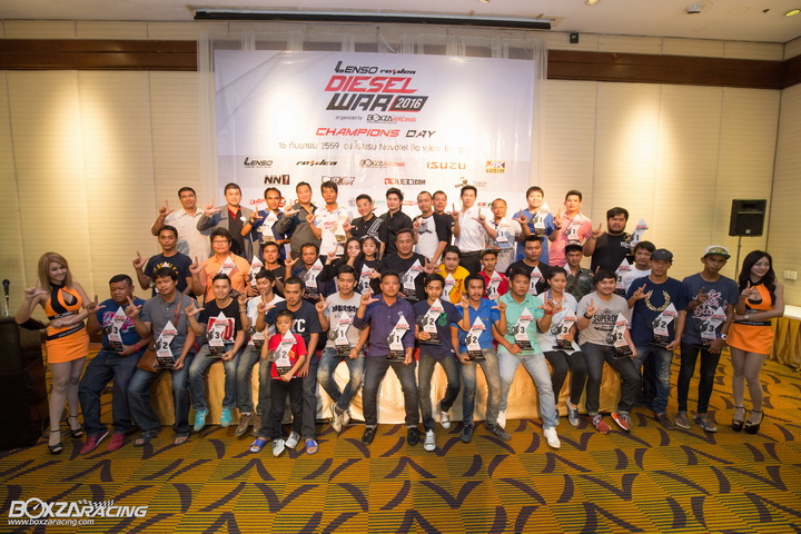 งานเลี้ยงย่อมต้องมีวันเลิกลา แต่ความภาคภูมิใจ เกียรติยศ ชื่อเสียง จะคงอยู่ตราตรึงในความทรงจำ ว่าครั้งหนึ่งเราเคยได้รับตำแหน่ง “แชมป์เปี้ยน” ของการแข่งขันรายการ Lenso Raiden Diesel War 2016 และ BoxzaRacing ก็มีความภาคภูมิใจเช่นเดียวกัน ที่ได้จัดงานแข่งขันรถยนต์ดีเซลทางเรียบระยะ 402 เมตร ที่ยิ่งใหญ่ที่สุดในสยาม ให้บรรดาอู่หรือทีมต่างๆได้มาลงแข่งขันวัดฝีมือเพื่อเฟ้นหาความเป็น “ที่สุด” แห่งวงการ รถยนต์โมดิฟายของประเทศไทย สำหรับปีหน้า 2017 เราจะได้พบกันอีกครั้งแน่นอน กับรายการแข่งขันรถยนต์ดีเซลที่ยิ่งใหญ่ที่สุดในไทย Lenso Raiden Diesel War 2017