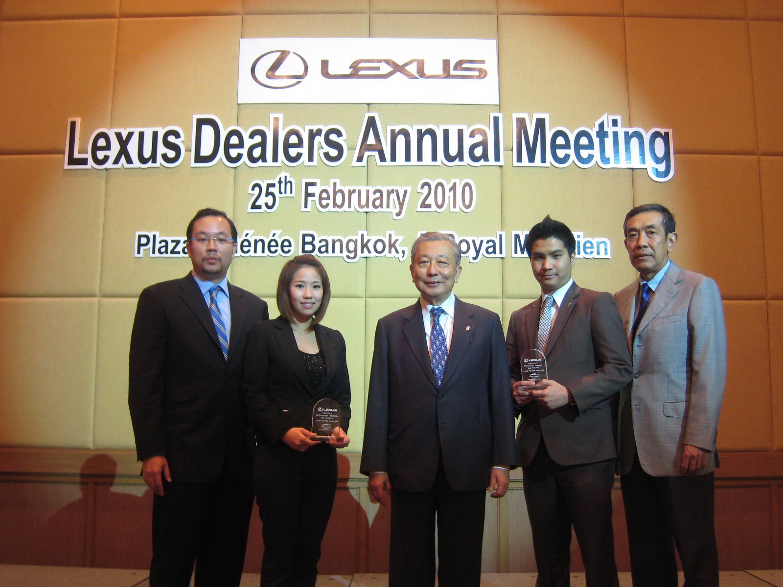 นายสกล ชีวมงคล กรรมการผู้จัดการ บริษัท เล็กซ์ซัส กรุงเทพ จำกัด (ขวาสุด) นำพนักงานเข้ารับรางวัลพนักงานขายดีเด่น ประจำปี 2552 ในงาน Lexus Dealer Annual Meeting 2010 โดยมี ดร.ชุมพล พรประภา ประธานกรรมการบริษัทฯ มาร่วมแสดงความยินดี ณ โรงแรมพลาซ่า แอทธีนี
