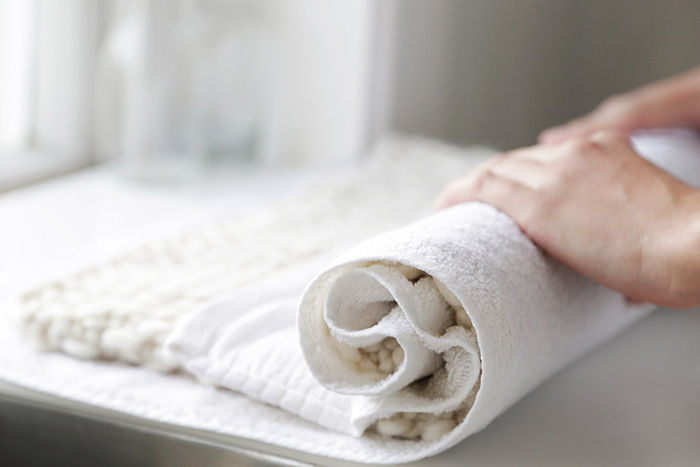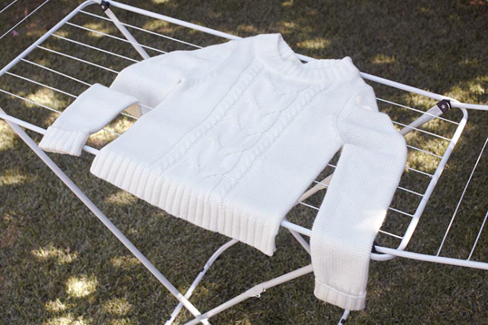 เมื่อขั้นตอนการซักผ่านไป ในขั้นตอนการตากก็ต้องใช้ความระมัดระวังไม่แพ้กันค่ะ เพราะก่อนตากไหมพรมนั้นห้ามสะบัดหรือบิดแรง ๆ เด็ดขาด! วิธีที่ถูกต้องและปลอดภัยสำหรับเนื้อไหมพรมก็คือการค่อย ๆ กดหรือบีบเพื่อไล่น้ำออก ตามด้วยการใช้ผ้าขนหนูมาซับอีกรอบโดยวางทับและม้วนเข้าด้วยกัน หรือจะใช้การวางผ้าประกบกันทั้งด้านบนและล่างเพื่อซับน้ำออกให้ได้มากที่สุด เพื่อให้เนื้อผ้าไม่อุ้มน้ำจนย้วยและแห้งได้เร็วขึ้นเมื่อนำไปตากค่ะ