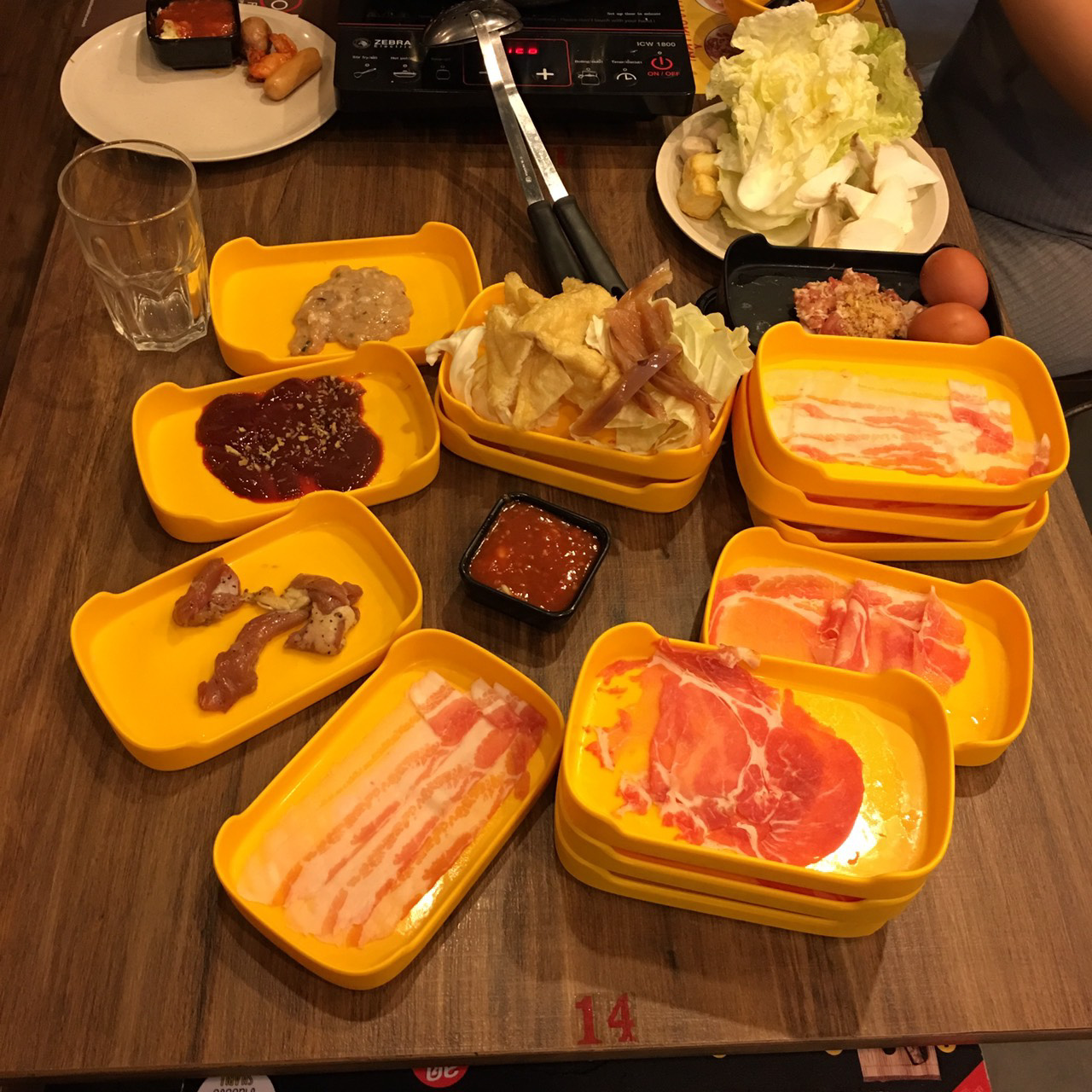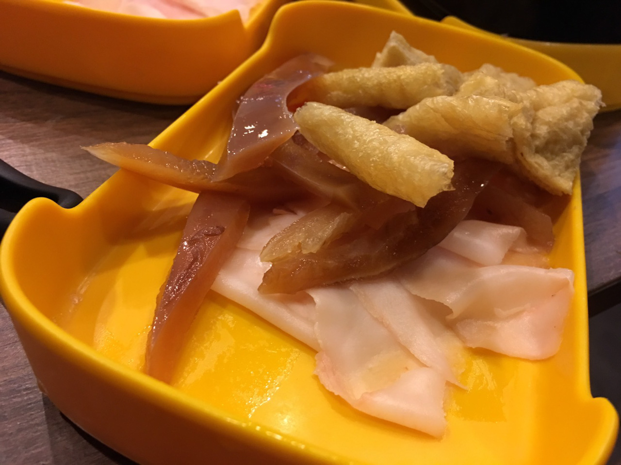 ส่วนที่เป็นบุฟเฟต์มีให้เลือกหลากหลาย เนื้อสันคอหมูสไลด์ , เนื้อสันนอกหมูสไลด์, เนื้อสามชั้นหมูสไลด์,ตับหมู, เต้าหู้ปลา, ลูกชิ้นและผักต่างๆ ส่วนที่ราคาสูงๆ อย่างเนื้อวัวก็มีนะ แต่ต้องสั่งเพิ่มในแบบ A la carte ซึ่งราคาก็มีหลายแบบ ส่วนซูชิก็สามารถสั่งตามใบสั่งอาหารได้เลยครับ มีหลายเมนูราคาไม่แพง ในส่วนตัวชูโรงอย่าง “น้ำจิ้มชาบู” จะมีสามแบบ คือน้ำจิ้มสูตรพิเศษของ ทางร้าน หน้าตาจะออกแนว น้ำจิ้มสุกี้หน่อยๆ น้ำจิ้ม พอนสึ ที่มีโชยุกับเหล้ามิรินเป็นตัวทีเด็ด และ น้ำจิ้มงา