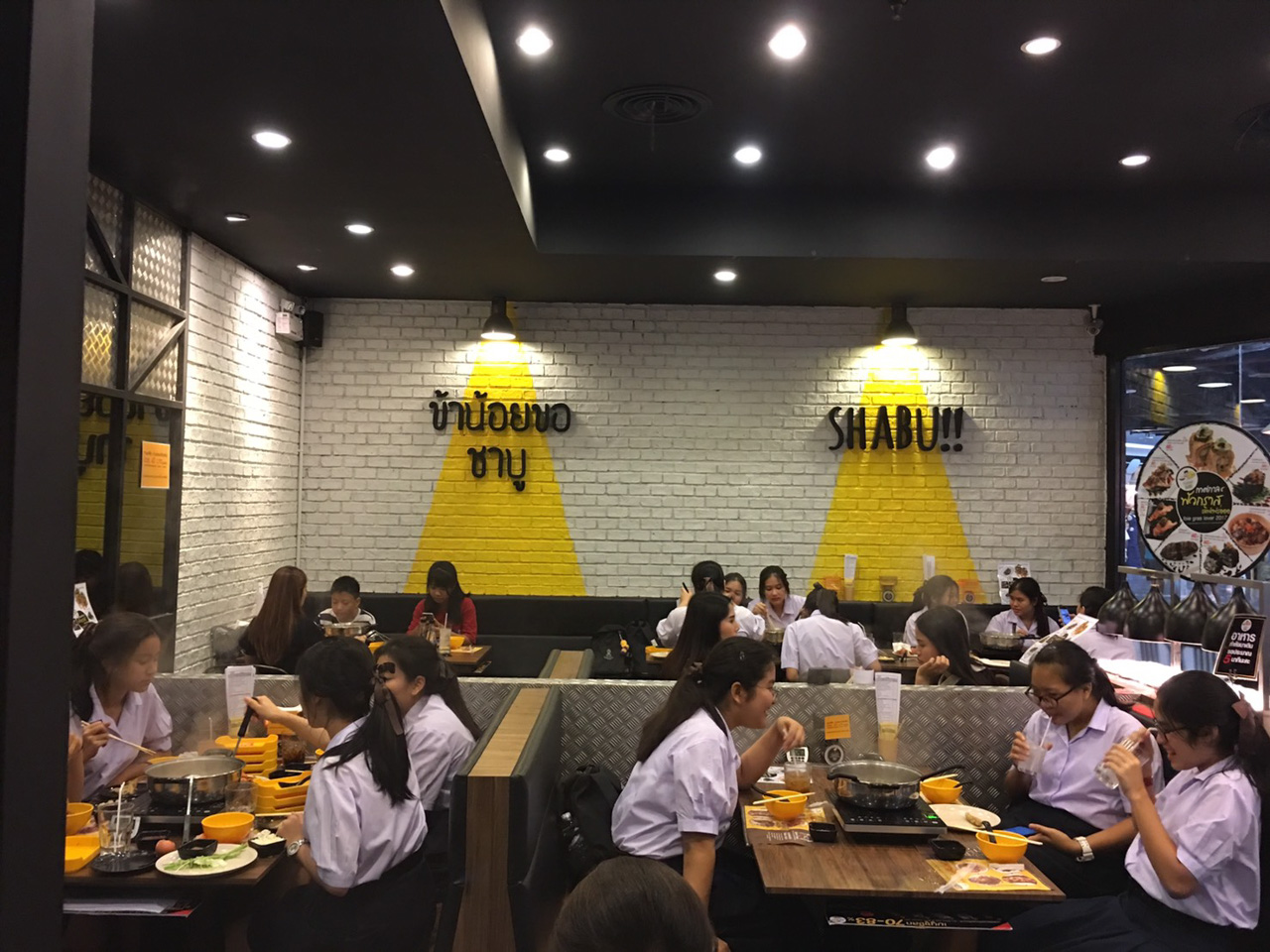เรื่องกินเป็นเรื่องใหญ่เสมอ..การสะสมไขมันมันเป็นเรื่องเล็กๆ ที่สร้างความสุขให้กับทุกๆ ท่าน ดังคำกล่าวที่ว่า “ผอมเป็นเรื่องของนางแบบ แหลก..ให้หมดโลกเป็นหน้าที่ของตรู” หากจะถามถึง “ บุฟเฟ่ต์ชาบู ” มีมาให้เลือกกันมากมายหลายร้าน แต่ผมได้แวะเวียนไปหนึ่งร้านให้ห้าง “ ยูเนี่ยนมอลล์ ” แถวๆ ลาดพร้าว ผมให้ความสนใจกับน้องๆ นักเรียน นักศึกษา ที่นั่งกันอยู่เต็มร้าน ถือได้ว่าคนเยอะดี จริงๆ พอไปมองป้ายราคาเริ่มต้นเพียง 186+ บาท โอ้..แม่เจ้าต้องลองแล้วล่ะ!! ร้านนี้ชื่อว่า “ข้าน้อยขอชาบู” ในร้านมีอาหารให้เลือกในรูปแบบ “บุฟเฟ่ต์ชาบู” และที่เป็น A la carte ก็คือพวก ซูชิ ซึ่งหน้าตาและราคาก็น่าสนใจเช่นกัน อย่าง ซูชิแซลม่อน ,ซูชิฟัวกราส์ ,ซูชิเนื้อวากิล และอื่นๆ อีกมากมาย ในราคาหลักสิบเท่านั้น ว่าแล้วก็ไปกินกันเลยดีกว่า