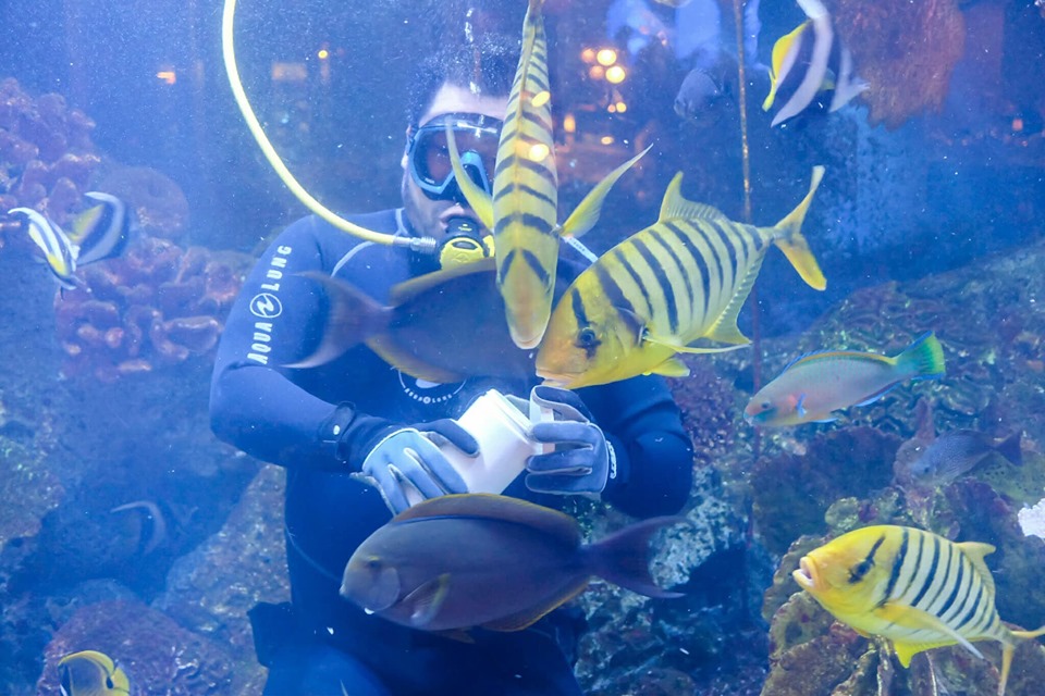 บอกเลยว่าโพสนี้ถูกใจสายครอบครัวสุดๆ เพราะ Copper Aquarium Restaurant เหมาะกับการพาครอบครัวมานั่งทานบุฟเฟ่ย์อาหารทะเลสดๆ ฟังเพลงเพลินๆ แถมมีตู้ปลาขนาดยักษ์ ที่มีปลามากกว่า 30 สายพันธุ์ พร้อมโชว์ Aquaman เป็นโชว์ให้อาหารปลา ที่สร้างความตื่นตาตื่นใจให้กับเด็กๆ ได้แน่นอน โดยบุฟเฟ่ย์อาหารทะเลที่นี่มีบริการในวันเสาร์และอาทิตย์