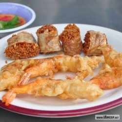 เย็นตาโฟใส่กุ้งทอดผสมเผือกทอด ที่รสชาติเข้ากันแบบที่ไม่เคยคาดคิดมาก่อน น้ำซุปมีความกลมกล่อมเป็นต้นทุนอยู่แล้ว ไม่ต้องปรุงเพิ่มก็อร่อย หรือถ้านิยมรสจัดจะสั่งเป็นเย็นตาโฟต้มยำก็แสบทรวงสาแก่ใจดี ที่ต้องสั่งมารับประทานด้วยกันกับเย็นตาโฟเลยก็คือ กุ้งทอด และ เผือกทอด นำมาจุ่มๆ ในน้ำซุปเย็นตาโฟสักครู่ รับรองว่าความอร่อยจะบังเกิด คีบเพลินจนต้องขอเบิ้ลอีกชาม