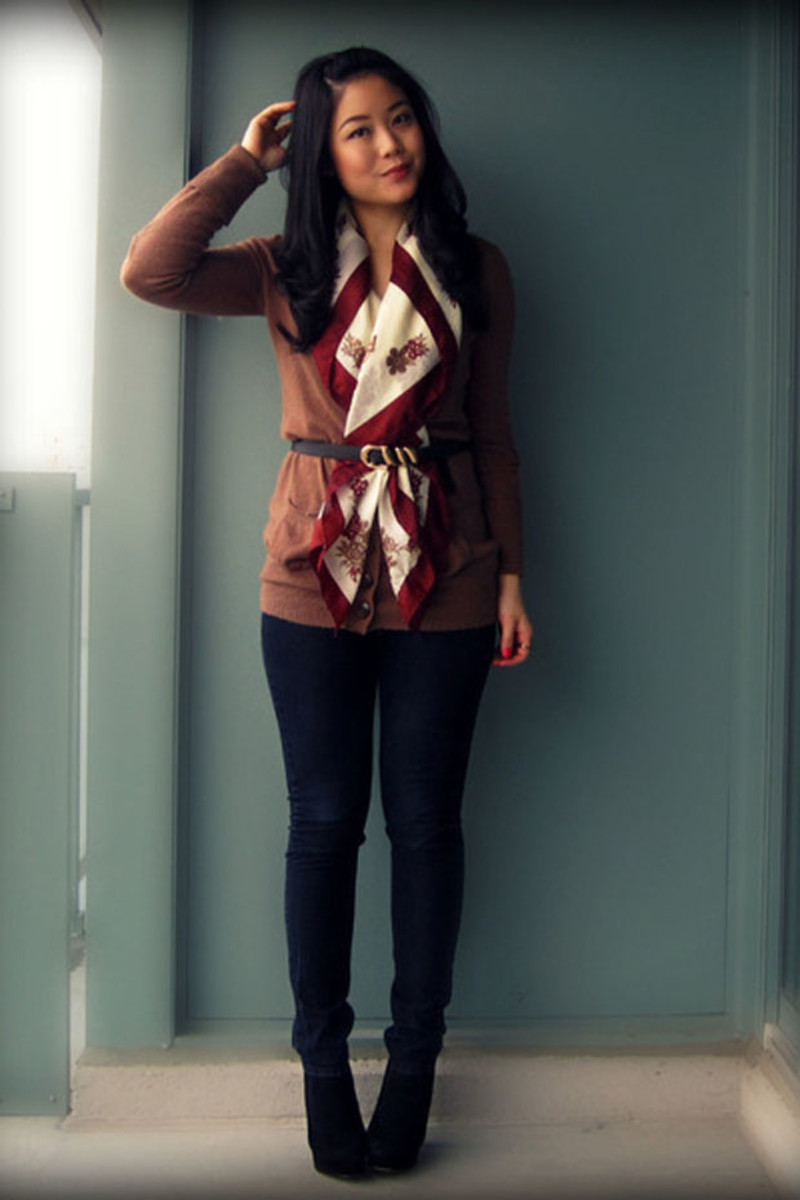 รวบผ้าพันคอด้วยเข็มขัด ดูสร้างสรรค์ และโดดเด่ดเป็นอย่างมาก