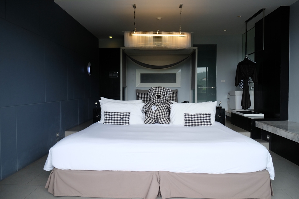 อิ่มท้องแล้วจากนั้นแล้วแว๊นมอเตอร์ไซน์ไปที่พักกันต่อเลย มาภูเก็ตครั้งนี้เราเลือกพักที่ FOTO HOTEL ตั้งอยู่ที่หาดกะตะ ห้องพักในโรงแรมนี้มีทั้งหมด 79 ห้อง โดยแบ่งออกเป็นสองประเภทคือ Ocean Hall กับ Ozone Hall โดยความแตกต่างระหว่าง 2 ห้องนี้จะอยู่ที่วิว Ocean Hall จะเป็นวิวทะเล ส่วน Ozone Hall จะเป็นวิวต้นไม้และภูเขา โรงแรมนี้ได้แนวคิดมากจากการถ่ายภาพ เน้นคุมโทนสีขาว-ดำ และมีเจ้าถิ่นคือ หมีลายผ้าขาวม้าขาว-ดำเรียกได้ว่าถ้ามาโรงแรมนี้ใครไปถ่ายกับเจ้าหมีตัวนี้ถือว่ามาไม่ถึงนะจ๊ะ เพราะมันคือ Signature ของโรงแรมนี้นั่งเอง ส่วนจุดเด่นอีกที่ของโรงแรมนี้คือสระว่ายน้ำสุดคลูที่รับรองว่าเหล่าบรรดาช่างภาพต้องกดชัดเตอร์กันรัวๆแน่นอน