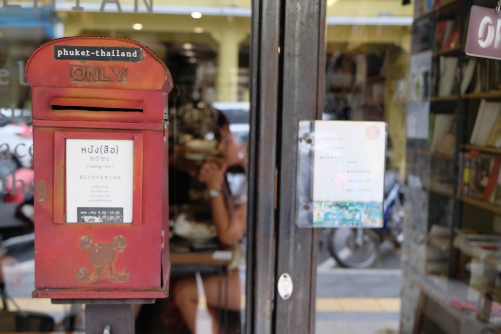 มาเที่ยวทั้งที่จะไม่แวะถ่ายรูปร้านกาแฟชิคๆ ก็คงไม่ได้ ว่าแล้วก็ตามหาร้านกาแฟในเมืองภูเก็ต แล้วก็ไปสะดุดตากับร้านนี้ มีชื่อว่า ร้านหนัง(สือ) 2521 เป็นร้านกาแฟที่ตั้งอยู่บริเวณถนนกลาง ในย่านเมืองเก่า สำหรับใครที่เดินถ่ายรูปเหนื่อยแล้วก็สามารถแวะพักดื่นอะไรเย็นๆ คลายร้อนได้ดีทีเดียว ความเก๋ของร้านนี้คือตกแต่งได้แบบชิวมาก โซนด้านหน้าติดแอร์จะมีหนังสือแบบพ็อคเก็ตบุ๊คมากมายให้เลือกหยิบอ่าน ส่วนโซนด้านหลังตกแต่งด้วยปูนไม่มีแอร์เปิดโล่งสไตล์บ้านของคนจีนในภูเก็ต ซึ่งให้ความรู้สึก โปร่ง โล่ง เย็นสบายมาก ราคาเครื่องดื่มก็กลางๆ เราแนะนำชามะนาว หวาน เปรี้ยว ชื่นใจ ร้านนี้เปิดตั้งแต่เวลา 9.00-20.30 น. แต่ไม่มีที่จอดรถนะจ๊ะ ร้านตั้งอยู่ริมถนนเลยจ้า
