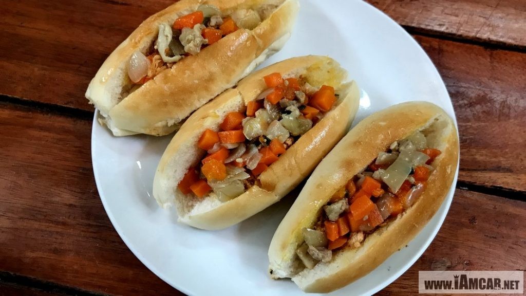 ส่วนเมนู “ขนมปังใส่ไส้” ที่ร้านใช้ขนมปังบาแกตที่อบจนนุ่มแล้วผ่ากลาง ทาเนย ใส่กุนเชียง หมูหยอง โปะหน้าด้วยหมูสับผัดกับแครอต หอมใหญ่ และต้นหอมซอย รับรองว่าอร่อยถูกใจสำหรับคนชอบทานผักแน่นอน