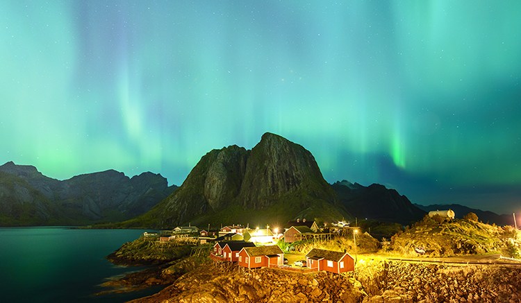ประเทศบ้านใกล้เรือนเคียงของสวีเดน ที่เป็นจุดชมแสงเหนืออันสวยงามไม่แพ้กัน บริเวณทางตอนเหนือของประเทศนอร์เวย์ หรือ Lapland เป็นพื้นที่ยอดนิยมในการเดินทางไปชมแสงเหนือ สถานที่ยอดนิยมจะอยู่ที่เมืองทรอมโซ Tromsøเมืองท่องเที่ยวที่ตั้งอยู่ตรงกลางของวงแหวนออโรร่า ( Aurora Oval ) บวกกับอากาศที่ดี ไร้มลพิษทำให้มีโอกาสที่จะได้เห็นแสงเหนือค่อนข้างสูงนอกจากเมืองทรอมโซแล้ว อีกที่หนึ่งที่นักล่าแสงเหนือไม่ควรพลาดก็คือ Lofoten Islands หมู่บ้านสวย ๆ ล้อมรอบด้วยภูเขาและทะเลนอกจากจะเป็นจุดชมแสงเหนือแบบเอกซ์คลูซีฟแล้ว ยังมีฉากหลังเป็นหมู่บ้านสวย ๆ อีกด้วย