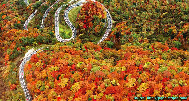 หนึ่งในเส้นทางขับรถชมใบไม้เปลี่ยนสีที่สวยที่สุดของญี่ปุ่น ระยะทางประมาณ 350 กิโลเมตร วิ่งจากเมืองอุเอดะในจังหวัดนากาโน่ ลัดเลาะตามเขาไปเรื่อย ๆ ผ่านจังหวัดกุนมะ แล้วไปสิ้นสุดที่นิกโก้ ระหว่างทางก็จะเป็นเส้นทางขึ้นลงเขา โค้งไปโค้งมา เมื่อขับขึ้นไปยังยอดเขาและมองลงมาก็จะสามารถเห็นถนนที่โอบล้อมไปด้วยใบไม้เปลี่ยนสี เป็นสีแดง ส้ม เหลือง สลับกันสวยงามมาก