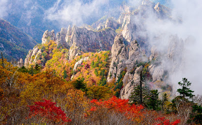 เทือกเขาซอรัคซาน (จ.คังวอนโด) เริ่มเปลี่ยนสี 27 กันยายน ช่วงพีค 16 ตุลาคม