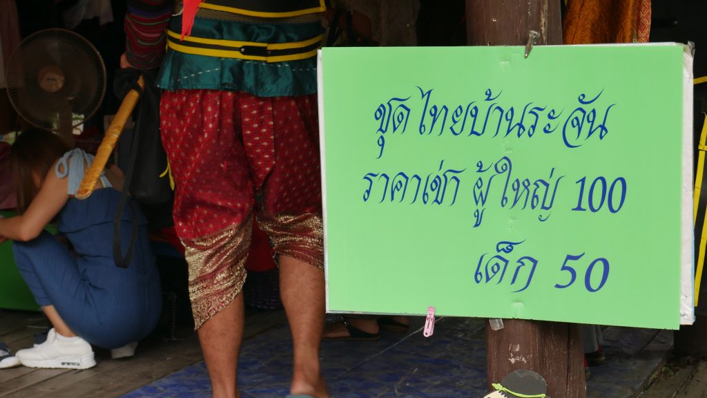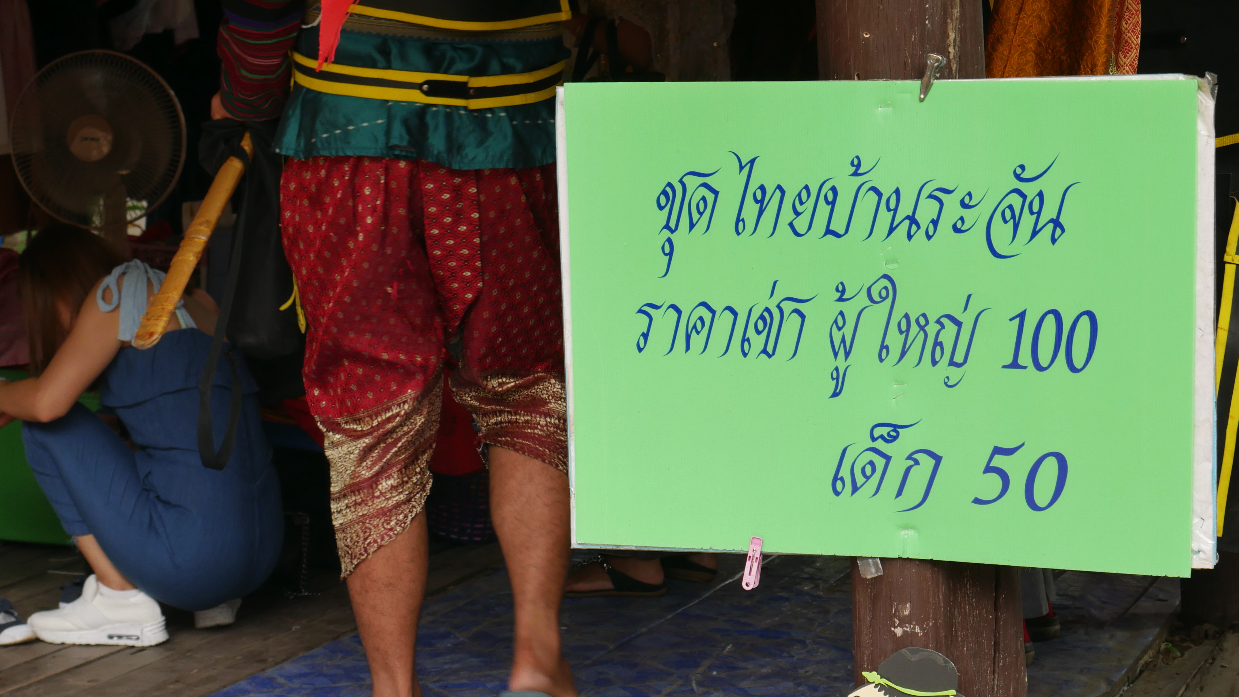 ร้านบริการเช่าชุดไทยสมัยโบราณบ้านระจัน ชุดมีให้เลือกหลายแบบทั้งผู้ชาย ผู้หญิง และเด็ก ราคาเช่าชุดผู้ใหญ่ อยู่ที่ 100 บาท เด็ก 50 บาท