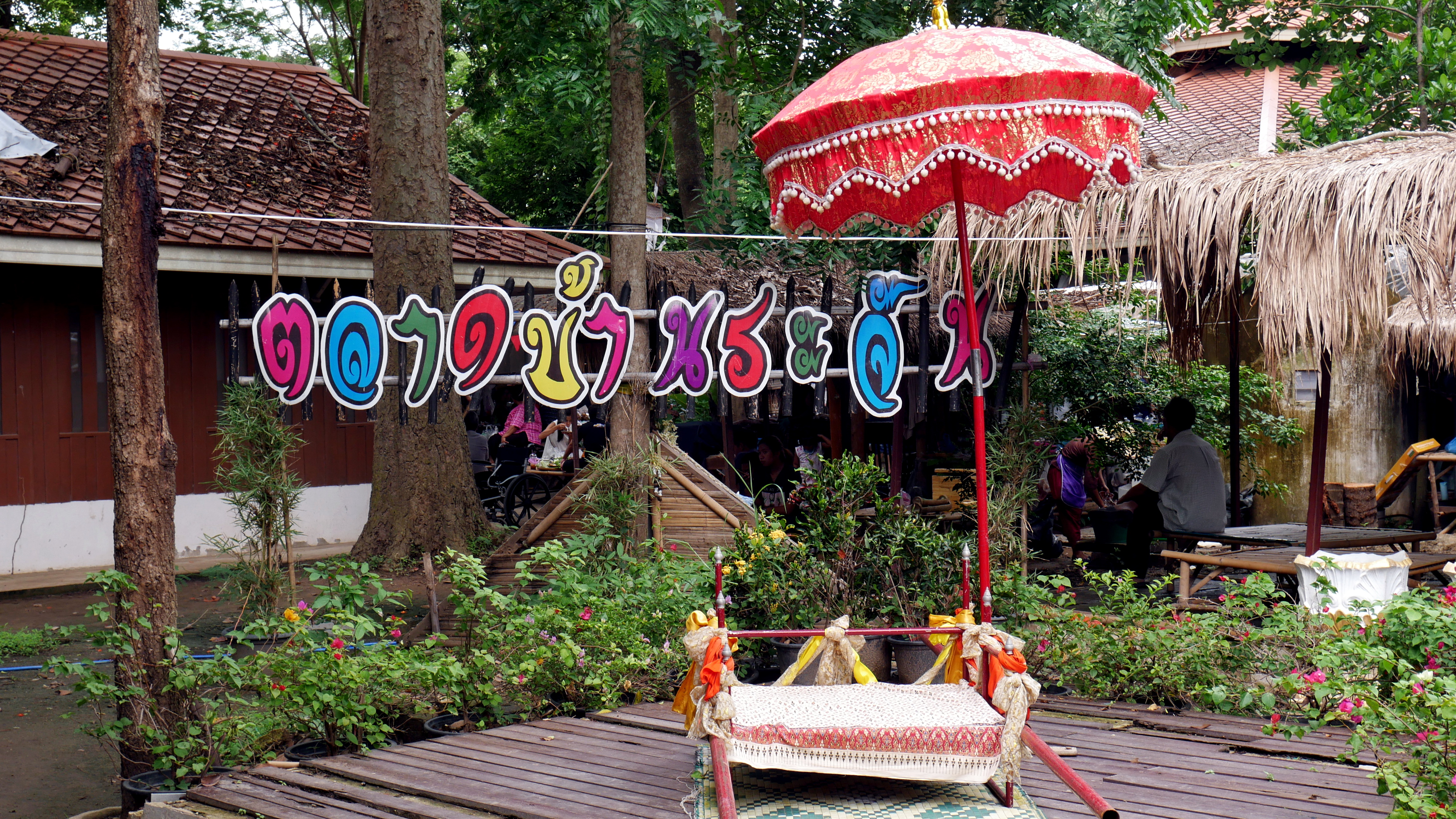 “แม่หญิงขอรับ รับขนมอะไรดีขอรับ” “ขอบน้ำใจเจ้าคะแม่หญิง” โอยยย! ทำไมเสียงทักทายเหล่านี้ช่างโดนใจมาดามเหลือเกิน ไพเราะ เปี่ยมเสน่ห์ ฟังแล้วรู้สึกประหนึ่งต้องมนต์ แบบโดนกระชากลากทะลุข้ามกาลเวลา พานางมาเดินนวยนาดอยู่กลางตลาดสมัยอยุธยาตอนปลาย จ่ายตลาดบ้านระจัน ตลาดโบราณย้อนยุค วัดโพธิ์เก้าต้น อำเภอค่ายบางระจัน จังหวัดสิงห์บุรี