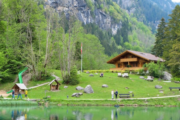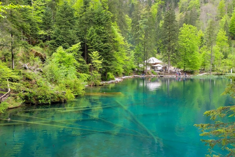 ทะเลสาป Blausee มีน้ำที่ใสมาก ต้นกำเนิดจากแหล่งน้ำใต้ดินหรือน้ำบาดาล ทะเลสาบแห่งนี้ถูกใช้เป็นบ่อเลี้ยงปลาเทร้าท์แบบ ออร์แกนิคของเอกชน มีค่าเข้าชมคนละ 8 CHF ค่ะ สำหรับคนที่ขับรถไปมีที่จอดรถมีข้างหน้าทางเข้า (เสียเงินนะจ๊ะ)
