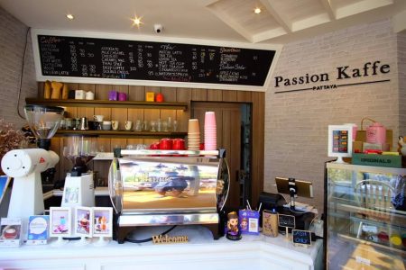 Passion Kaffe คาเฟ่ เล็กๆ แต่น่ารักสุดๆ ร้านตั้งอยู่บนถนน พัทยา นาเกลือซอย 18/2 ชลบุรี (อยู่บริเวณด้านหน้า อีสท์ซี รีสอร์ท) สามารถจอดรถริมทางได้เลย บรรยากาศในร้านอบอุ่น ร้านตกแต่งในสไตล์ English Country ที่ผสมผสานความเป็นบ้านกลางไร่แบบชิลล์ ๆ มีมุมถ่ายรูปหลายมุม เรียกได้ว่าถ่ายได้ตั้งแต่หน้าประตูเลย รับรองคนที่ชอบถ่ายนรูปมาแล้วต้องติดใจแน่นอน ที่ร้านมีทั้งเมนูคาว หวาน และเครื่องดื่ม เราลองสั่งเมนูซิกเนเจอร์ของร้านมาชิมคือ โทสลาวาชาไทย อร่อยกลมกล่อมมาก ชาไม่หวานจนเกินไป ถ้าใครมาเที่ยวแถวนี้จดชื่อร้านลงลิสรัวๆ เลนค่ะ เวลาเปิดร้าน อังคาร – อาทิตย์ เวลาตั้งแต่ 09:00 – 19:00 น.ค่ะ