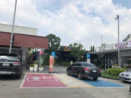 ก่อนที่เราจะไปตะลุยคาเฟ่กันที่ จ.ชลบุรี ก็ขอตั้งต้นกันที่ ปั้มน้ำมัน ปตท.สาขาเหรียญทอง ราชพฤกษ์ กันก่อน ต้องบอกเลยว่าสาขานี้ครบทุกความต้องการจริงๆ ไม่ว่าจะ เติมน้ำมัน ทำผม กินข้าว กินก๋วยเตี๋ยว ร้านขายยา กินกาแฟ Cafe Amazon ซื้อของใน เซเว่น หรือแม้กระทั้งส่ง Kerry ก็มีไว้รองรับทุกความต้องการ ภายในบริเวณปั้มกว้างขวาง มีที่จอดรถมากมาย แต่ก็รถแน่นตลอด เพราะว่ามีร้านรวงที่ตอบโจทย์ทุกความต้องการภายในปั้ม ดีงามราชพฤกษ์จริงๆ