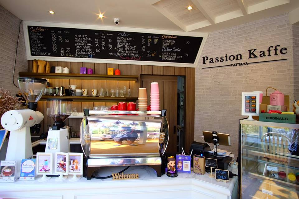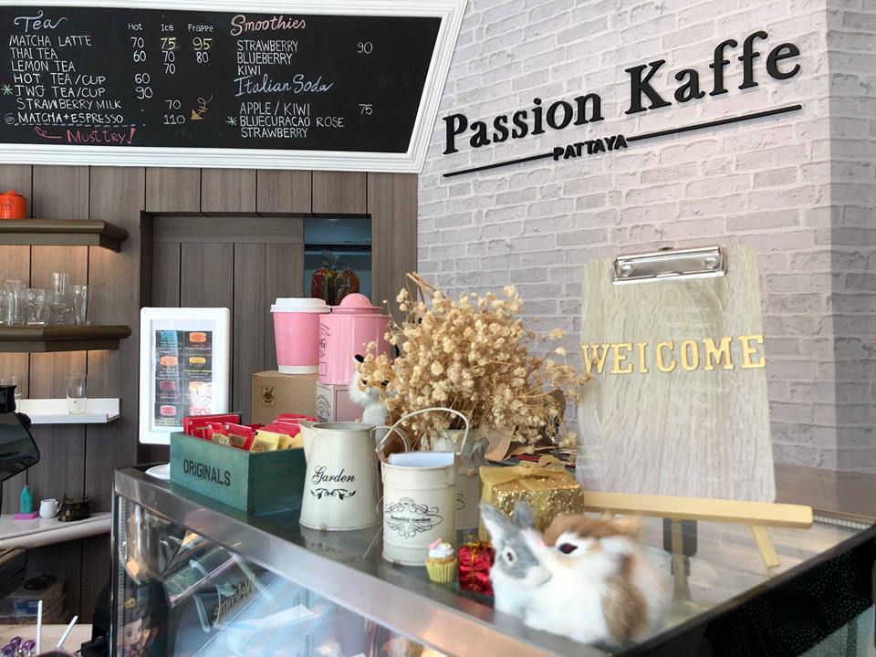 Passion Kaffe  คาเฟ่ เล็กๆ แต่น่ารักสุดๆ ร้านตั้งอยู่บนถนน พัทยา นาเกลือซอย 18/2 ชลบุรี (อยู่บริเวณด้านหน้า อีสท์ซี รีสอร์ท) สามารถจอดรถริมทางได้เลย บรรยากาศในร้านอบอุ่น ร้านตกแต่งในสไตล์ English Country ที่ผสมผสานความเป็นบ้านกลางไร่แบบชิลล์ ๆ  มีมุมถ่ายรูปหลายมุม เรียกได้ว่าถ่ายได้ตั้งแต่หน้าประตูเลย รับรองคนที่ชอบถ่ายนรูปมาแล้วต้องติดใจแน่นอน ที่ร้านมีทั้งเมนูคาว หวาน และเครื่องดื่ม เราลองสั่งเมนูซิกเนเจอร์ของร้านมาชิมคือ โทสลาวาชาไทย อร่อยกลมกล่อมมาก ชาไม่หวานจนเกินไป ถ้าใครมาเที่ยวแถวนี้จดชื่อร้านลงลิสรัวๆ เลนค่ะ เวลาเปิดร้าน อังคาร – อาทิตย์ เวลาตั้งแต่ 09:00 – 19:00 น.ค่ะ
