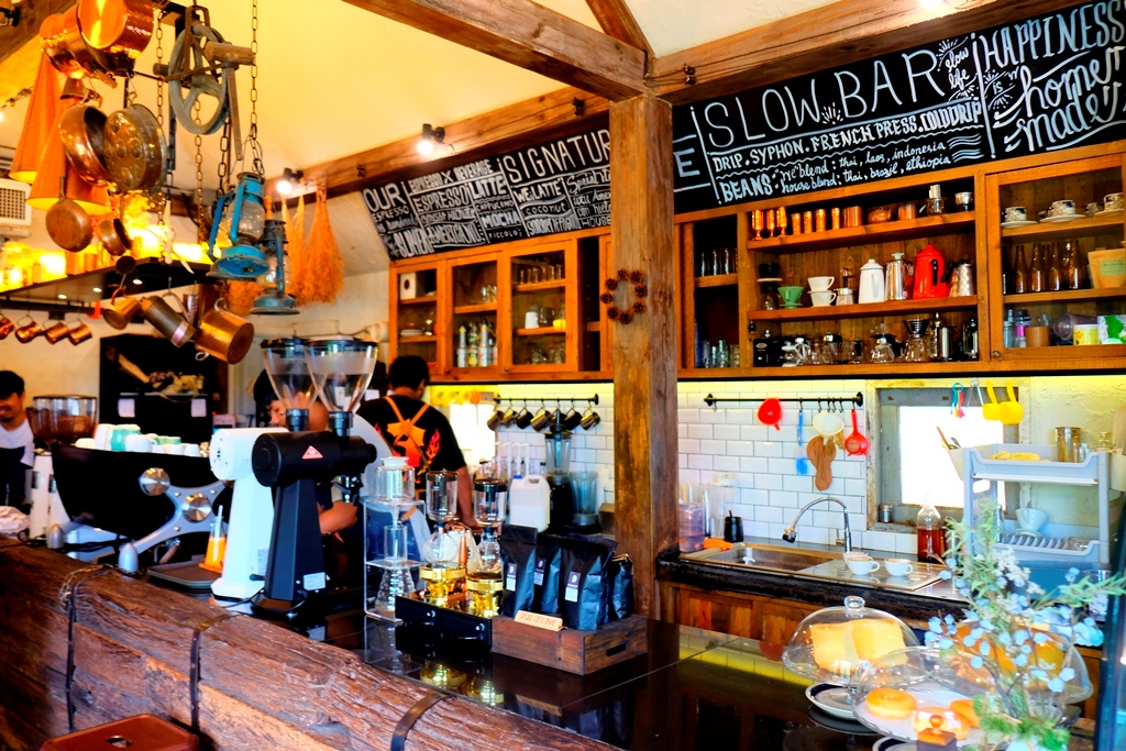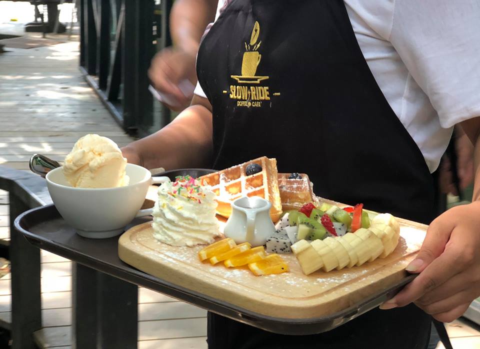 Slow Ride Coffee & Cafe อีกหนึ่งร้านบรรยากาศดีๆ ที่ควรค่าแกการมา ร้านนี้มีความต่างจากร้านอื่นๆในชลบุรี คือมีมุมห้องส่วนตัว เหมาะสำหรับการมานั่งคุยงานและประชุมได้ ทางหลานมีหลายโซนให้เลือกนั่ง ทั้ง Outdoor และ Indoor แถมยังมีดนตรีสดเล่นเพลงสบายๆ ไว้คอยขับกล่อมให้เพลินไปอีก ทางร้านมีทั้งเมนู คาวหวานและเครื่องดื่ม  พิกัดร้านอยู่เลียบทางรถไฟมุ่งหน้าเข้าพัทยา เปิดจันทร์-อาทิตย์ เวลา 8.00-22.00 น. ค่ะ