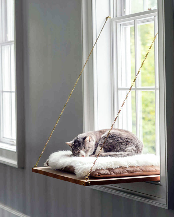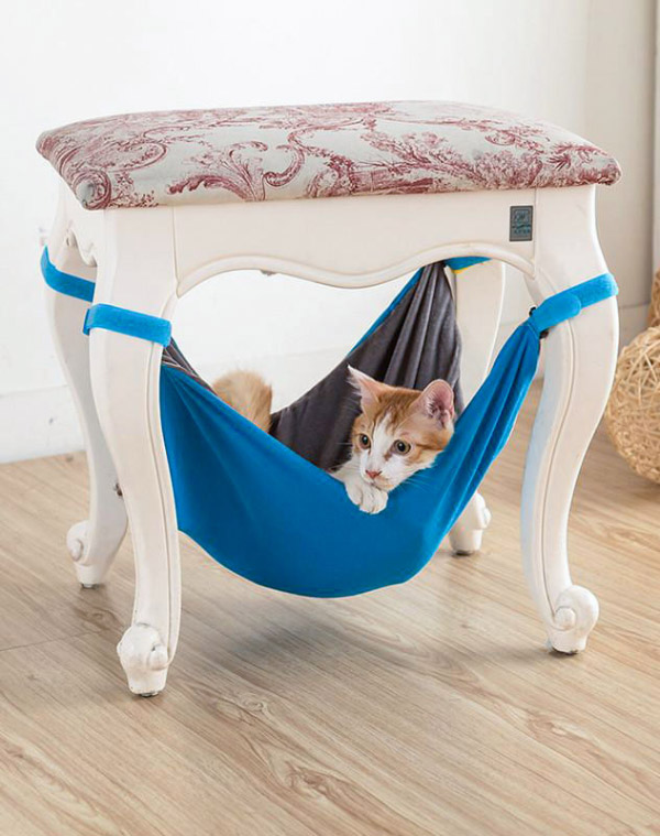 บ้านของเราก็เหมือนของน้องแมว บางมุมที่เหลือพื้นที่เล็ก ๆ ก็สามารถจัดการให้เป็นมุมพักผ่อนของน้องแมวและยังคงเป็นพื้นที่ใช้สอยของเจ้าของได้ตามปกติ อย่างใต้เก้าอี้ทำงานหรือหรือเก้าอี้ในห้องนั่งเล่นที่เป็นแบบโปร่ง สามารถหาผ้ามาผูกติดกับขาเก้าอี้ทั้ง 4 มุม หรือจะเย็บเป็นเปลแบบสำเร็จให้ถอดซักได้สะดวก คราวนี้การใช้เวลาของเราและน้องแมวก็สามารถอยู่ในมุมเดียวกันได้อย่างตัว