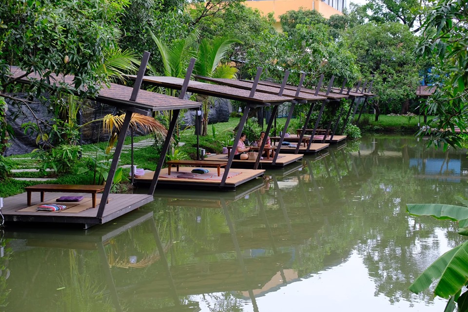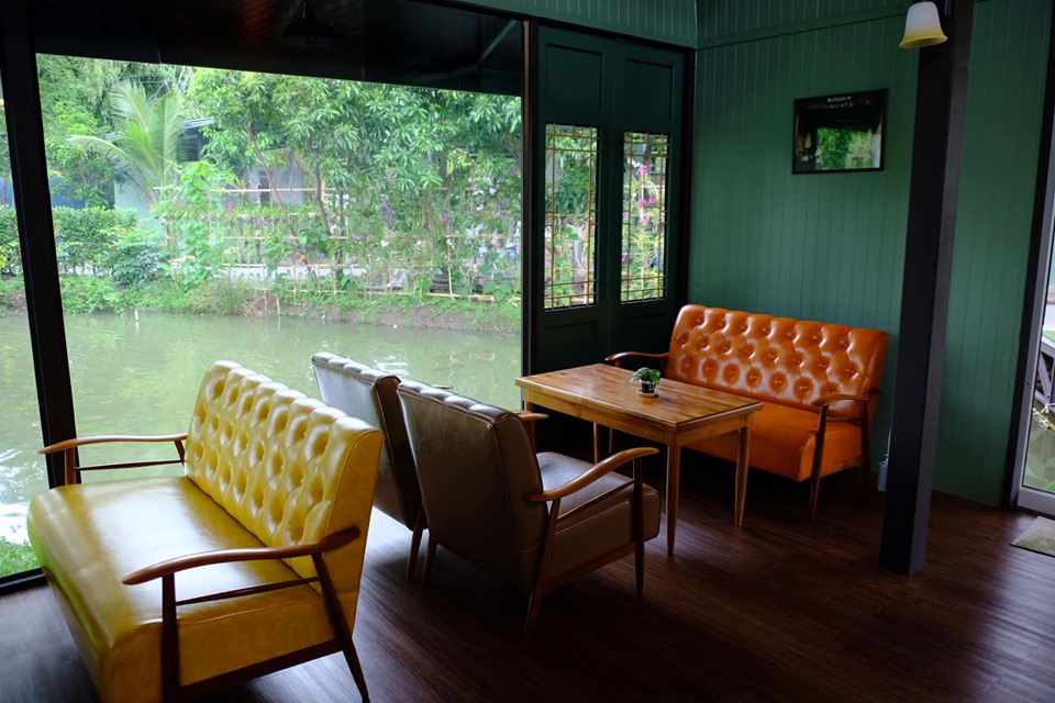 ชายสมัย 2498 คาเฟ่ บางกอก คาเฟ่ในร่องสวนตกแต่งด้วยสไตล์เรโทร จีนร่วมสมัย มีความร่มรื่นสุดๆ สาขานี้แบ่งโซนที่นั่ง เป็น Indoor และ Outdoor นั่งในสวนเลยจ้า