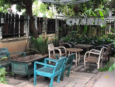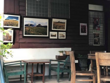 บรรยากาศของร้านถูกตกแต่งไว้อย่างสบายๆ มีที่นั่งให้เลือกด้านในและด้านนอก บรรยากาศเหมือนมานั่งทานขนมเล่นบ้านเพื่อนค่ะ ในส่วนของโซนข้างในก็อบอุ่นน่ารัก และโซนข้างนอกก็ร่มรื่นด้วยต้นไม้ ให้อารมณ์เหมือนนั่งในสวนค่ะ