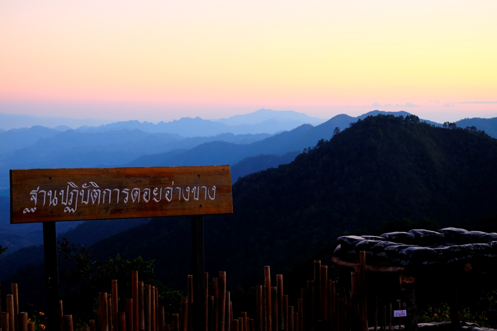เป็นจุดที่อยู่ระหว่างเส้นทางที่จะมุ่งหน้าไปบ้านขอบด้งและนอแล จุดนี้จะเป็นจุดที่สามารถชมพระอาทิตย์ขึ้น ได้สวยงามโดยเฉพาะในฤดูหนาวจะเป็น ช่วงที่นักท่องเที่ยว จะมารอชมพระอาทิตย์ขึ้นและทะเลหมอกตอนเช้า ทำให้เป็นจุดท่องเที่ยวที่คึกคักอีกจุดหนึ่ง มีร้านค้าขายอาหารเปิดให้บริการ หลายร้าน หรือใครอยากจะช้อปปิ้งสินค้าขากชาวบ้านบนดอย “อ่างขาง” ก็ลุยได้เลยค่ะ