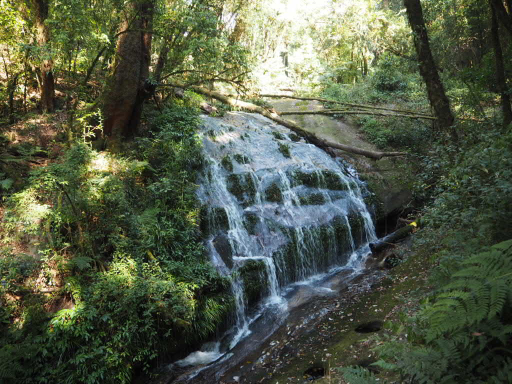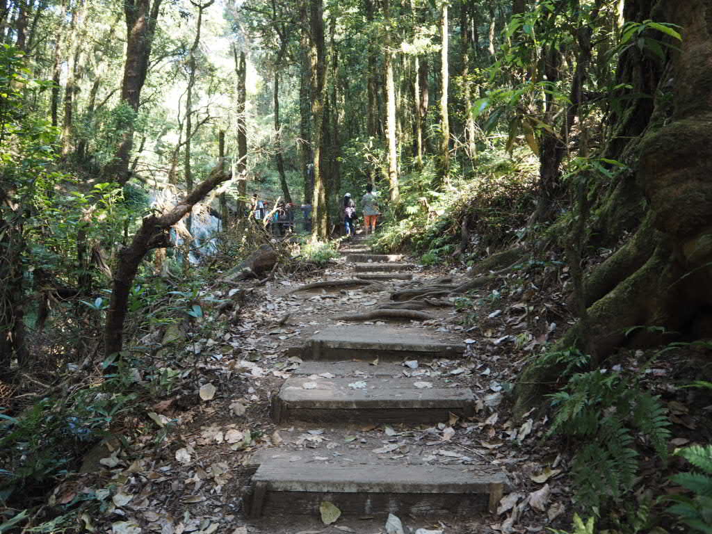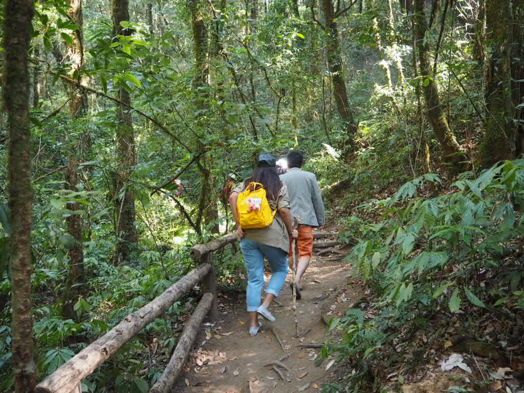 เราเริ่มต้นทริปนี้ด้วยการพาไปออกกำลังขากันที่ กิ่วแม่ปาน กันค่ะ กิ่วแม่ปาน อยู่ในเขตอุทยานแห่งชาติดอยอินทนนท์ ตรง กม.ที่ 42 ของถนนสายจอมทอง-ยอดดอยอินทนนท์ ใกล้กับพระมหาธาตุ นภเมทนีดลและ พระมหาธาตุนภพลภูมิสิริ เป็นเส้นทางเดินศึกษาธรรมชาติระยะสั้น เป็นวงรอบระยะทางประมาณ 3 กิโลเมตร ที่ระดับความสูงประมาณ 2,000 เมตร จาก ระดับน้ำทะเลถือ เป็นจุดชมวิวพระอาทิตย์ขึ้นและ ทะเลหมอกที่สวยงามอีกจุดหนึ่ง แต่ทริปนี้เราเลือกเดืนไปถึงจุดชมวิวแล้วกลับมาทางเดิมนะคะ การจะเดินไปกิ่วแม่ปานนั้น เราต้องจ้างไกด์ท้องถิ่นนะคะ เค้าไม่ให้เราเดินไปโดยไม่มีไกด์ค่ะ ผู้สนใจต้องติดต่อขอเจ้าหน้าที่นำทางที่ศูนย์บริการนักท่องเที่ยวกิ่วแม่ปานตั้งอยู่ตรงเริ่มเดินทาง โดยเปิดให้นักท่องเที่ยวเริ่มเข้ามา ได้ตั้งแต่ เวลา 6 โมง เช้า คิดค่านำทาง 200 บาท