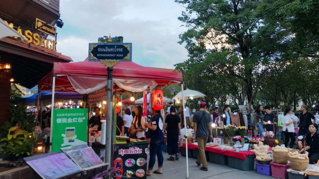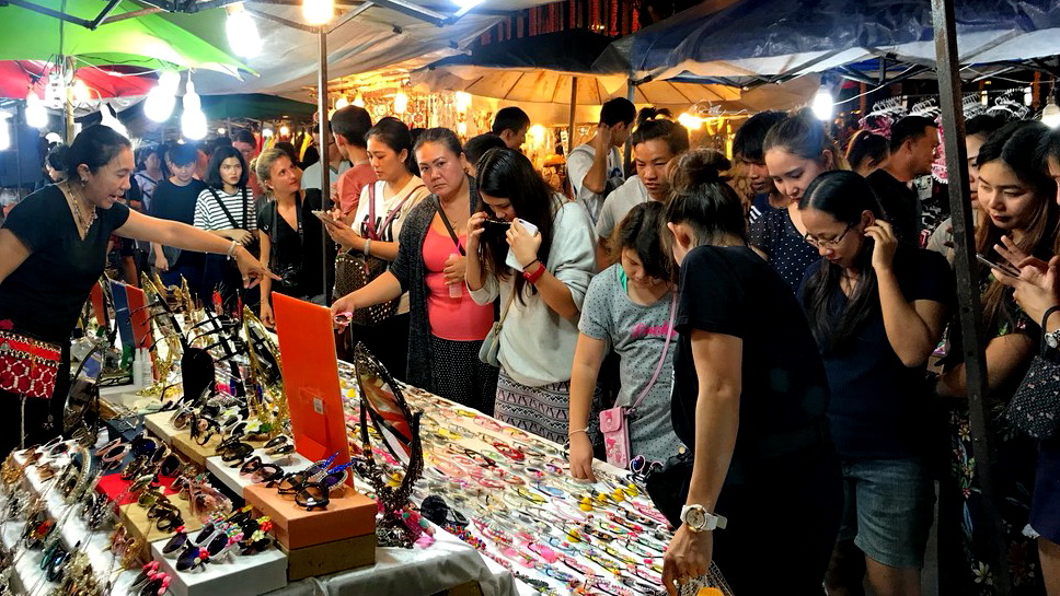 ยิ่งดึก ยิ่งคึกคัก นักท่องเที่ยวทั้งชาวไทย ชาวจีน ฝรั่ง เดินกันเบียดเสียด จับจ่ายใช้สอยช่วยเศรษฐกิจเมืองเชียงใหม่กันเป็นที่สนุกสนาน