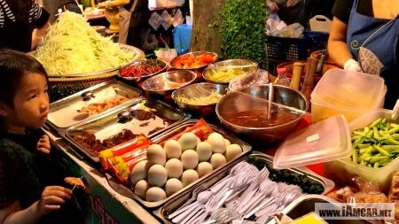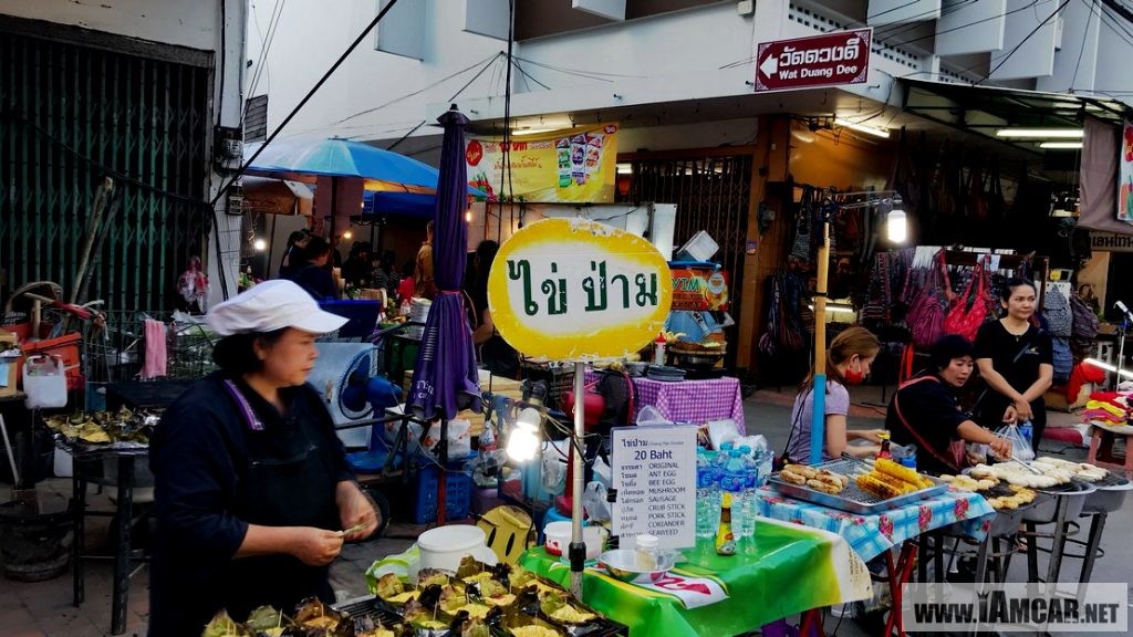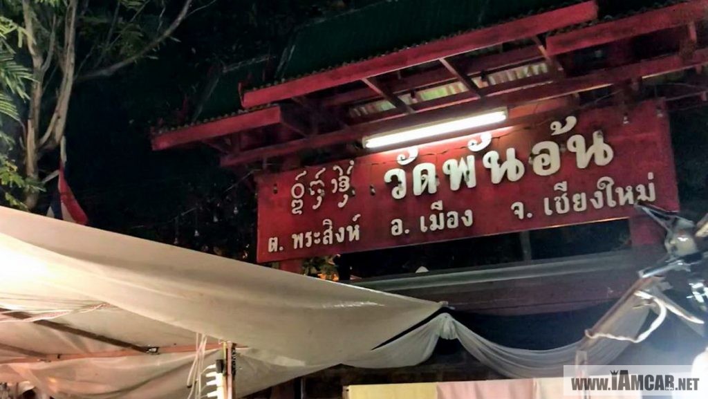 หลังจากที่เดินกันตั้งแต่หน้าที่ว่าการอำเภอเมืองเชียงใหม่ตามเส้นสีแดงมาเรื่อยๆ จนสุดถนนราชดำเนิน ประตูท่าแพ ก็ถืงเวลาวนกลับตามเส้นสีน้ำเงินแล้วนะคะ ซึ่งช่วงขากลับนี้ มาดามได้พิกัดจุดแวะพักให้ 2 จุด .. จุดแรก คือวัดพันอ้น จุดนี้เป็นพื้นที่จำหน่ายอาหารขนาดใหญ่ของถนนคนเดินวันอาทิตย์ ท่าแพ เชียงใหม่ แห่งนี้ก็ว่าได้ นับจำนวนร้านค้าแล้วไม่น่าจะต่ำกว่า 50 ร้าน มีอาหารให้ได้เลือกทานกันอย่างหลากหลาย มีที่นั่งให้ได้ทานกันชิลล์ๆ ไป ห้องน้ำห้องท่าก็มีไว้บริการครบค่ะ