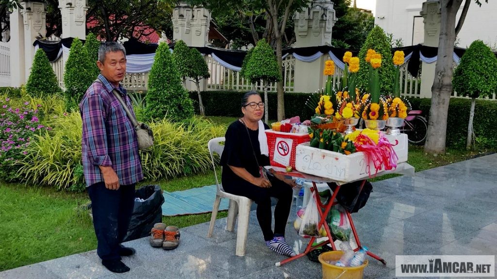 คุณลุง คุณป้า ตั้งแผงเล็กๆ บริการดอกไม้ธูปเทียน เพื่อใช้สักการะ ชุดละ 20.- บาท (คุณลุงจะช่วยดูแลเรื่องความสะอาดบริเวณอนุสาวรีย์ด้วยค่ะ)