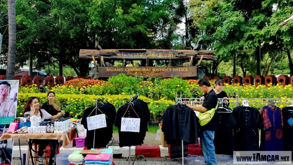 บริเวณหน้าที่ว่าการอำเภอเมืองเชียงใหม่ พ่อค้าแม่ค้าก็กำลังเริ่มตั้งแผงกันขายสินค้า