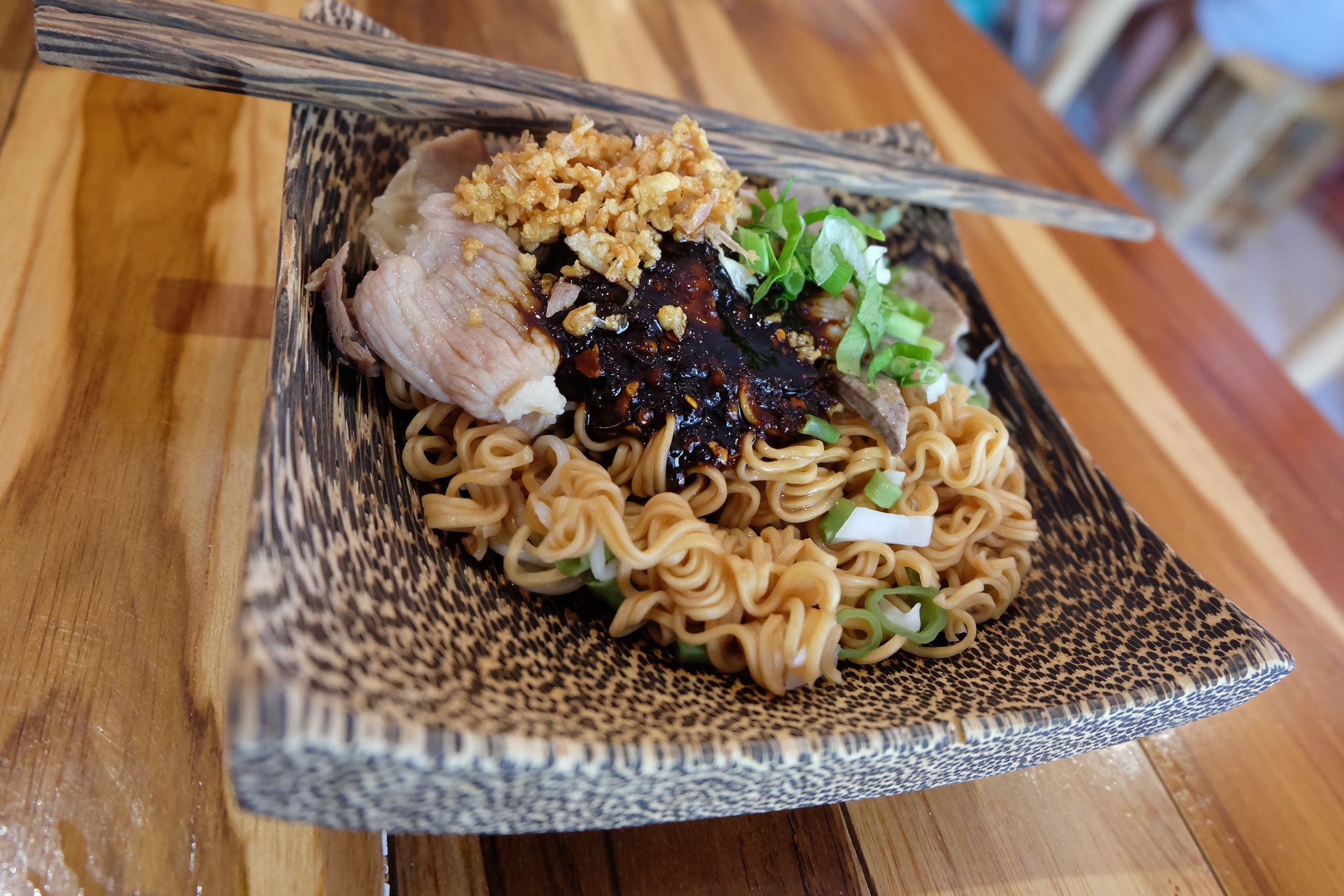 ขับรถออกจากกรุงเทพมา มื้อแรกของจัดหนักด้วยของคราวได้ยินสียงลือเสียงเล่าอ้างมานานว่า แซ่บ! เลยไม่พลาดขอแวะมาโดนสักหน่อย เอกลักษณ์ของร้านนี้คือภาชนะที่ใส่คือกะลา แบ่งเป็น 3 แบบ คือ ถ้ากินแบบแห้งจะเรียกว่า ก๋วยเตี๋ยวบก ถ้ากินแบบน้ำเรียกก๋วยเตี๋ยวเรือ และยังสามารถสั่งลวกจิ้มมาทานเพลินๆได้อีก หมูนุ่มลิ้น ทีเด็ดคือน้ำจิ้มที่อร่อยเริ่ด ใครผ่านมาแถวนี้ต้องแวะมาชิม ร้านตั้งอยู่ที่ ซอยเนินพลับหวาน พัทยา