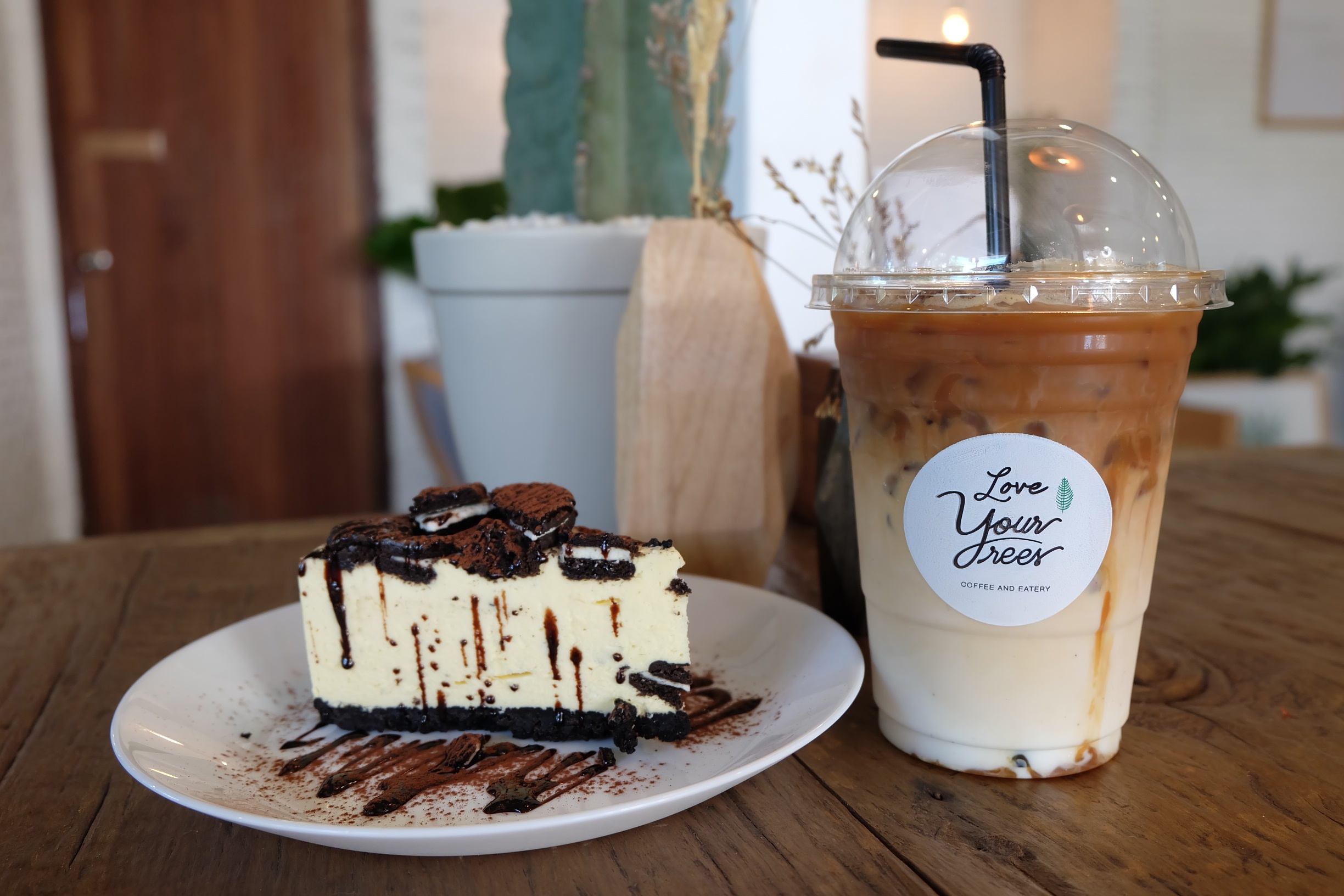 จบของคาวขอต่อด้วยกาแฟสักแก้วเค้กสักชิ้น ขอแนะนำร้าน LOVE YOUR TREES อีกหนึ่งร้านน่ารักๆ บรรยากาศอบอุ่นที่ตั้งอยู่ ต.นาจอมเทียน อ.สัตหีบ ค่ะ ร้านตั้งอยู่ริมถนนเลยหาไม่ยากและมีที่จอดรถพร้อมค่ะ ร้านแบ่งเป็น 2 โซน In door และ out door ร้านตกแต่งด้วยต้นไม้นานาชนิด ให้อารมณ์นั่งดื่มกาแฟในสวน ชิวไปอีกแบบ
