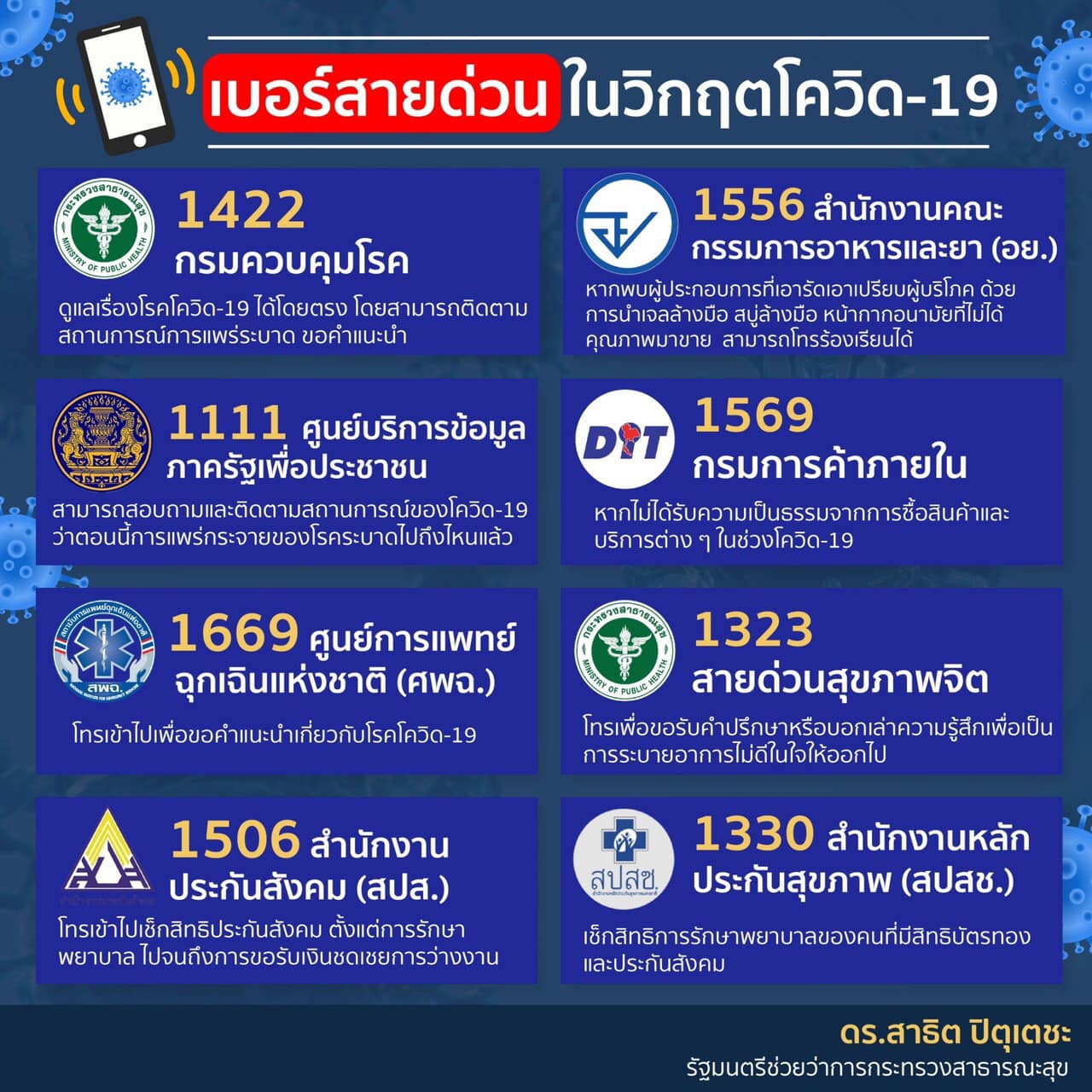 1.สายด่วน กรมควบคุมโรค 1422