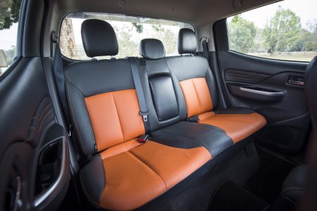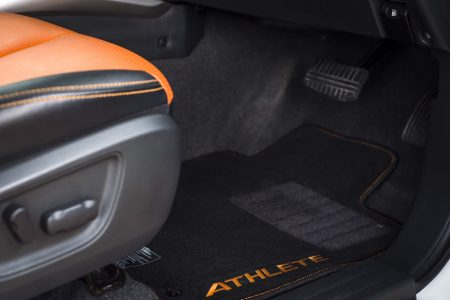 ภายในห้องโดยสารนั้น ตกแต่งด้วยสีส้ม-ดำ เบาะที่นั่งหุ้มวัสดุหนังทูโทน ปักโลโก้ ‘Athlete’ พร้อมเดินด้ายตะเข็บสีส้มบนคันเกียร์และคอนโซลกลาง เติมอารมณ์สปอร์ตด้วยพรมปูพื้นชุดพิเศษสำหรับ มิตซูบิชิ ไทรทัน แอทลีท ใหม่ โดยเฉพาะ