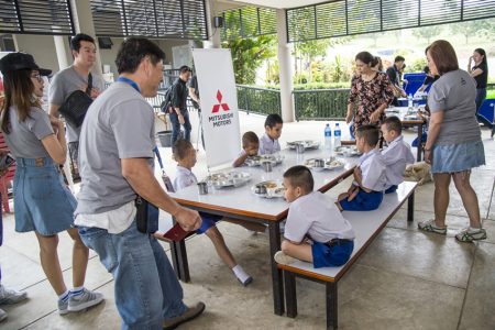 บริษัท มิตซูบิชิ มอเตอร์ส (ประเทศไทย) จำกัด นำโดย คุณฉัตรชัย ฉัตรพุทธรักษา ผู้อำนวยการฝ่ายประชาสัมพันธ์ พาคณะสื่อมวลชนเดินทางโดยกระบะพันธุ์เข้ม มิตซูบิิชิ ไทรทัน แอทลีท ไปร่วมมอบความสุข แบ่งปันรอยยิ้มและเสียงหัวเราะแด่น้องๆ นักเรียนโรงเรียนสอนคนตาบอดมกุฎคีรีวัน (เขาใหญ่) โดยคณะสื่อมวลชนได้ร่วมกันเตรียมอาหารกลางวัน และของว่างแก่น้องๆ นักเรียน และร่วมรับประทานอาหารกลางวันร่วมกันอย่างอิ่มเอมใจ