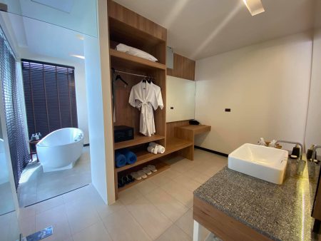 ห้องที่เราเลือกพัก เป็น Pool Villa มีความเป็นส่วนตัวสูง ห้องกว้าง ตกแต่งเรียบง่าย แต่ฟังก์ชั่นการใช้งานครบถ้วน!