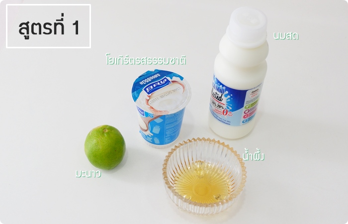 สูตรที่ 1 โยเกิร์ต + นมสด + น้ำผึ้ง + มะนาว