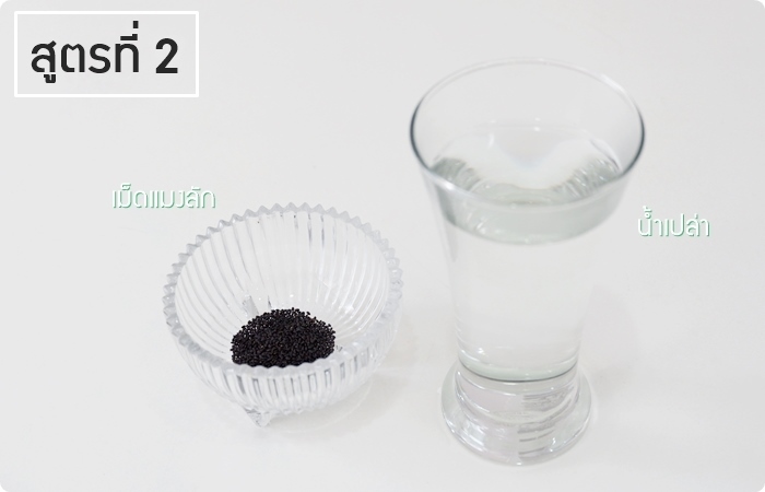 สูตรที่ 2 น้ำเปล่า + เม็ดแมงลัก