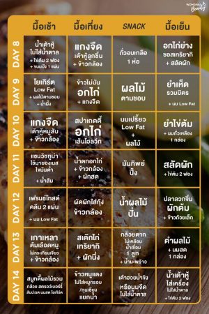 ตารางที่เราเอามาฝากเป็นตารางมื้ออาหารสำหรับ 1 เดือน เพื่อสาวๆ ที่ต้องการพิชิตความ “ผอม” นะคะ เราดูแล้วทำตามได้ไม่ยาก และไม่หนักจนเกินไป เพราะบางสูตรรู้เลยว่าต้องกลับมาโยโย่แน่นอน ทั้งนี้ทั้งนั้นเราสามารถปรับได้ตามความเหมาะสมแล้วอย่าลืมออกกำลังกายควบคู่ด้วยนะคะ