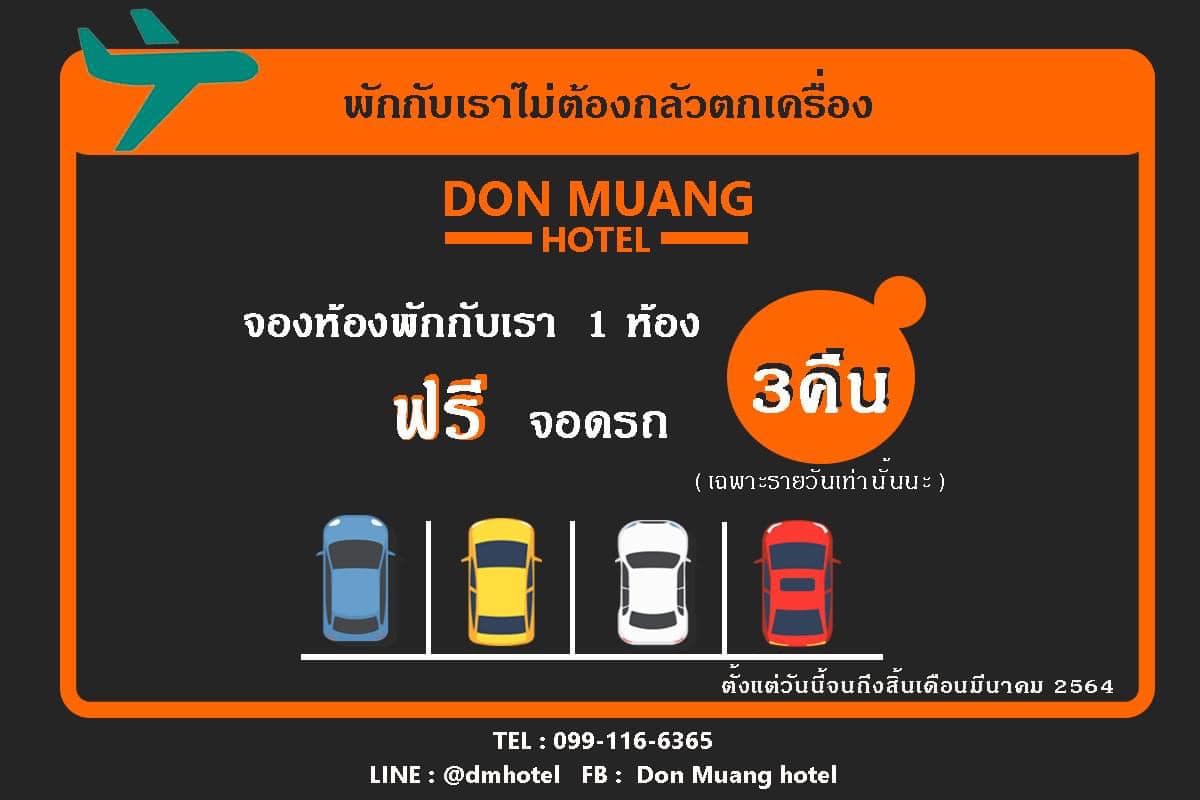 Don Muang Hotel ใกล้สนามบินแค่ 800 เมตร หมดกังวลเรื่องการตกเครื่องแน่นอน! แถมทางโรงแรมมีบริการรถไปส่งสนามบินด้วยนะ มีค่าใช้จ่ายแค่คนละ 35 บาทเอง แต่ความพิเศษของโรงแรมนี้ มันอยู่ที่เพื่อนๆสามารถจอดรถได้ฟรี 3 วัน!! ใช่ค่ะ ฟังไม่ผิด จองที่พัก 1 คืน จอดรถฟรี 3 วันเก๋ๆ ประหยัดค่าที่จอดรถไปอี๊ก!! เริ่ดป่ะละ?