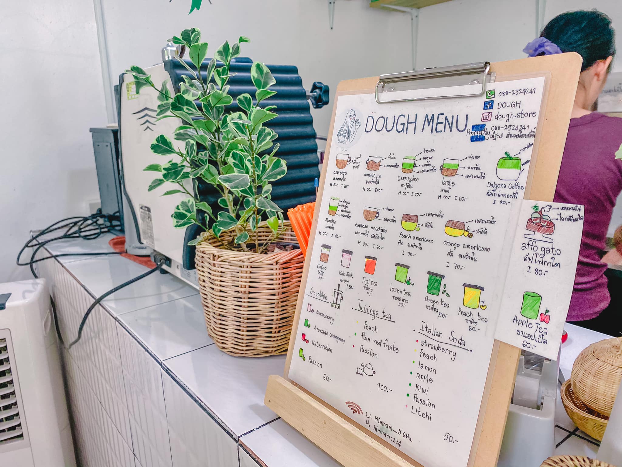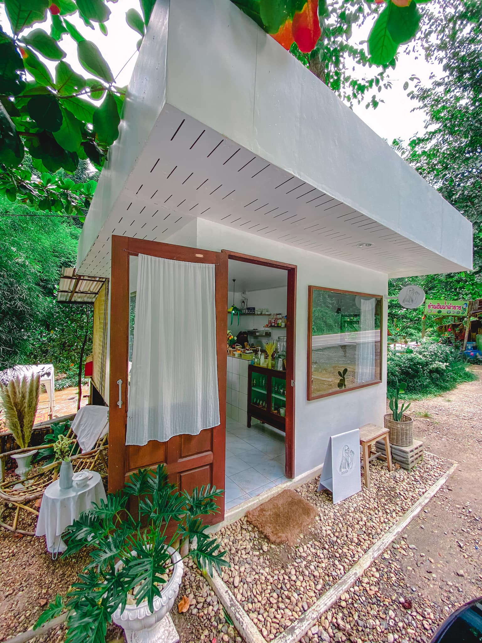 ร้านเล็กๆ แต่โคตรน่ารัก DOUGH อยู่ทางขึ้นม่อนแจ่ม ริมทางติดน้ำตก มีเครื่องดื่มและขนมโฮมเมดทำใหม่ๆสดๆ ราคาก็น่ารักไม่แพง แถมทางร้านจัดมุมน่ารักๆไว้ให้ถ่ายรูป แบบอารมณ์มาปิกนิคในสวน มาเถอะเชื่อเรา!!