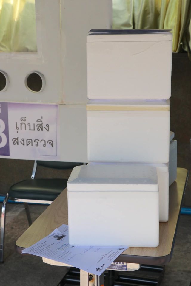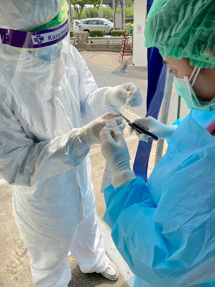 จากนั้นเจ้าที่จะมาตรวจเก็บเชื้อ โดยจะตรวจทางปากและจมูกค่ะ