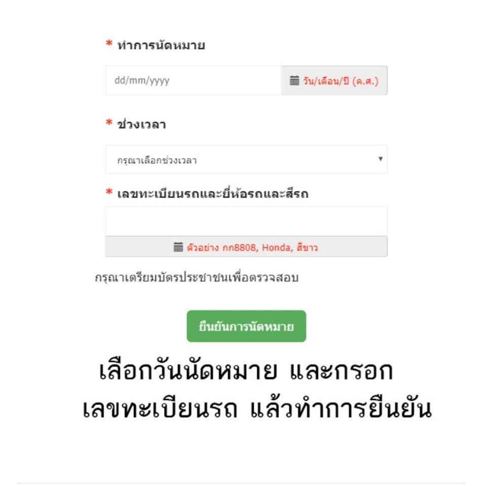 เมื่อถึงวันนัด ให้ผู้ตรวจเตรียมบัตรประชาชน แล้ววนรถไปจอดตามจุดที่เจ้าหน้าที่บอกค่ะ