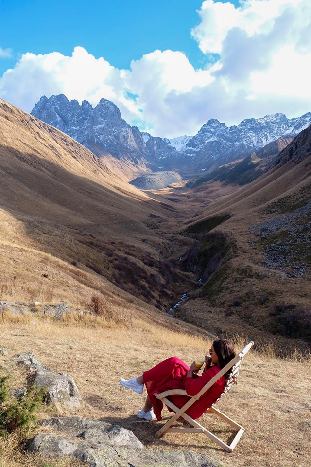 Fifth Season Hotel อยู่ที่เมือง Juta ประเทศจอร์เจียค่ะ เป็นโรงแรมที่อยู่บนเขา ใช่จ๊ะ!บนเขาที่เราต้องเดินขึ้นไป 1 กิโล มันคือการแบกกระเป๋า เดินขึ้นเขาที่สูง แต่วิวมันสุดมากเลยเธอ รองเท้าผ้าใบต้องมานะงานนี้ แต่เชื่อเราเถอะ ถ้าขึ้นไปถึงแล้วรับรองหายเหนื่อยแน่นอน